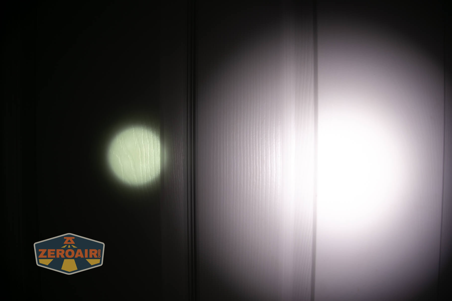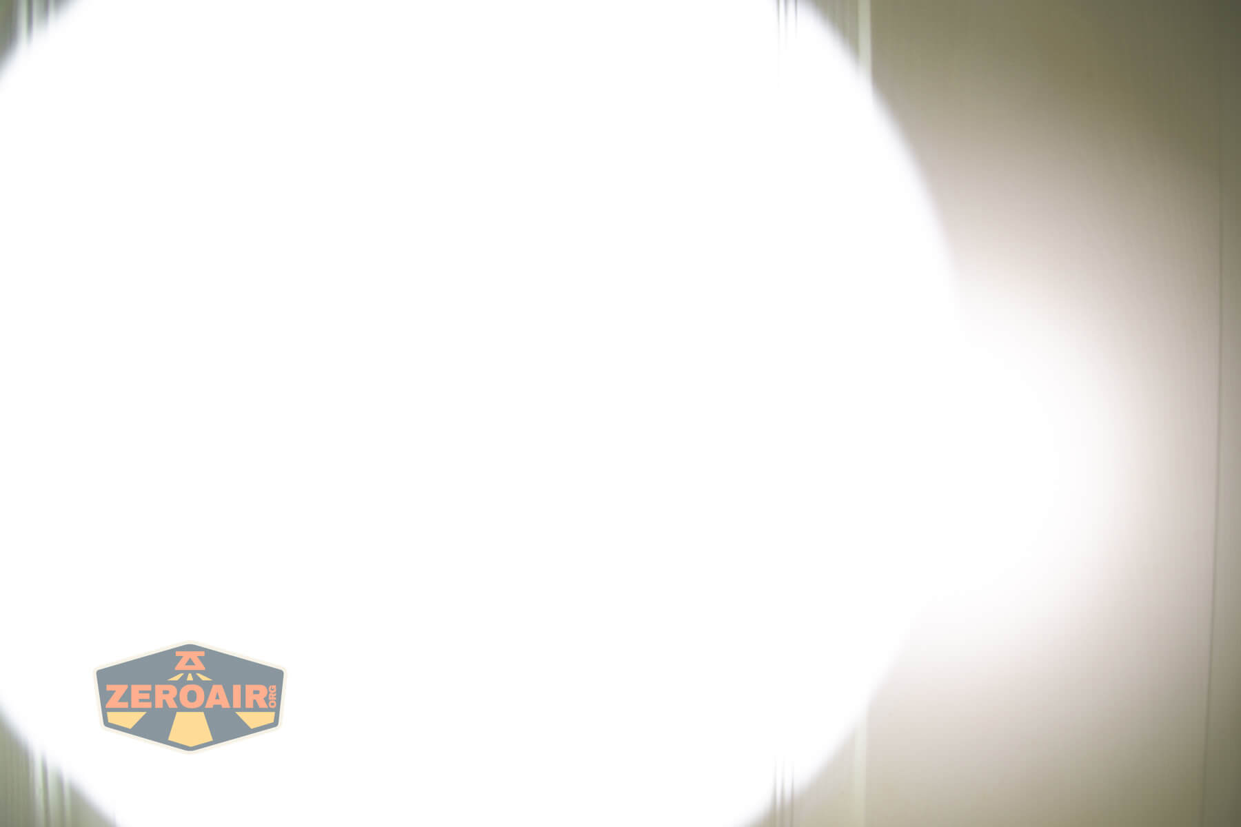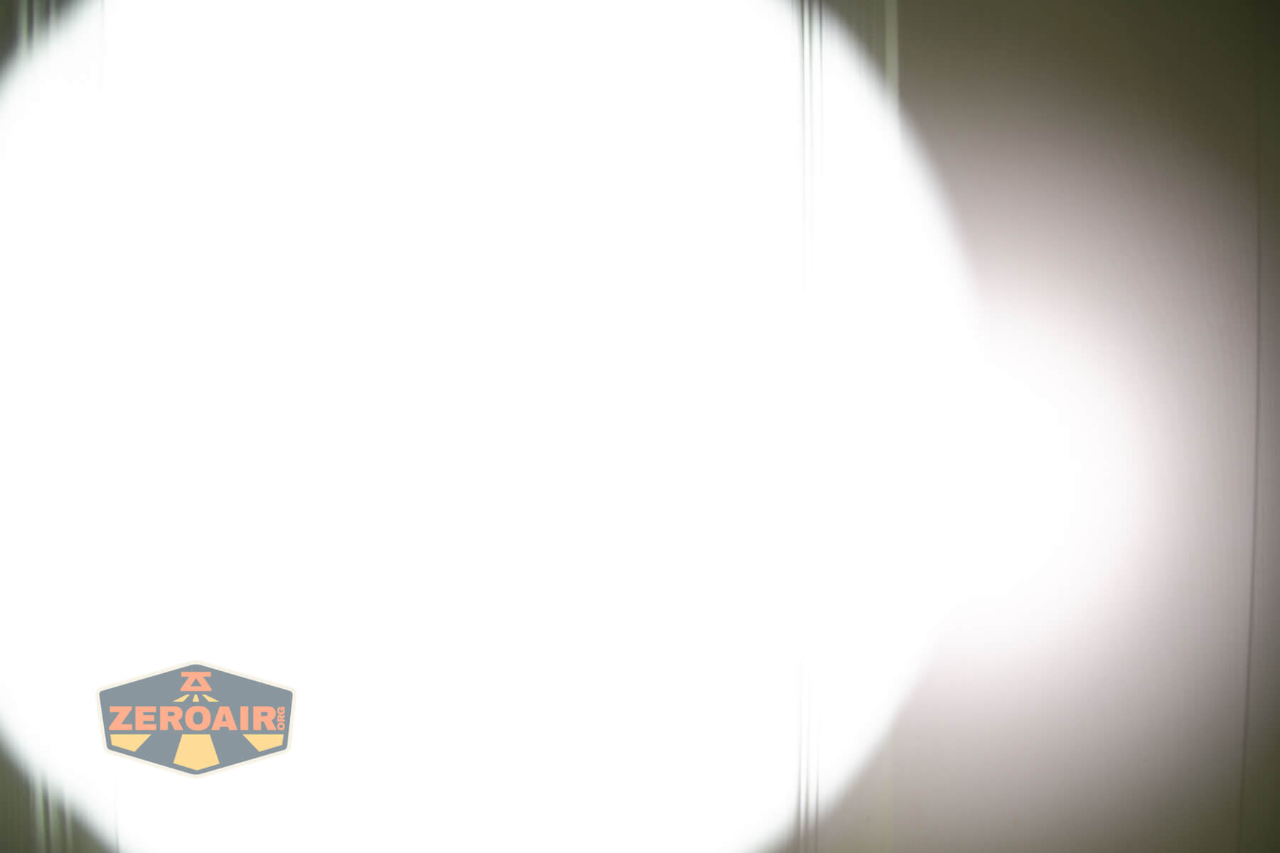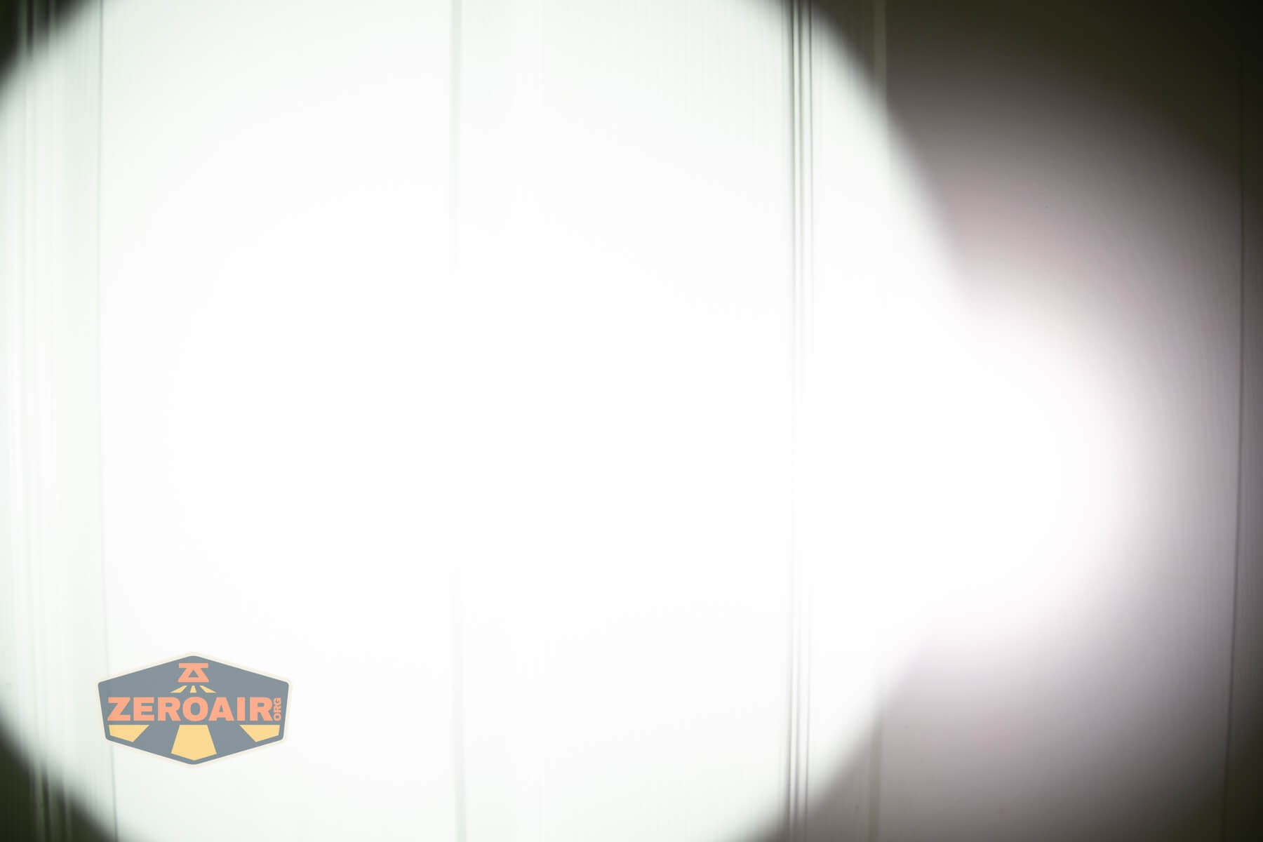Below are a few runtime tests. Low voltage protection was observed in all tests, coupled with a warning from the indicating switch. I am not seeing output hit the claimed 6800 lumens, but since I do measure around the right throw value, I’ll say that’s “good enough.” The fault is probably in my test equipment, and anyway, by eye, you couldn’t distinguish 4200 lumens from 6800 lumens (science confirms it!).
