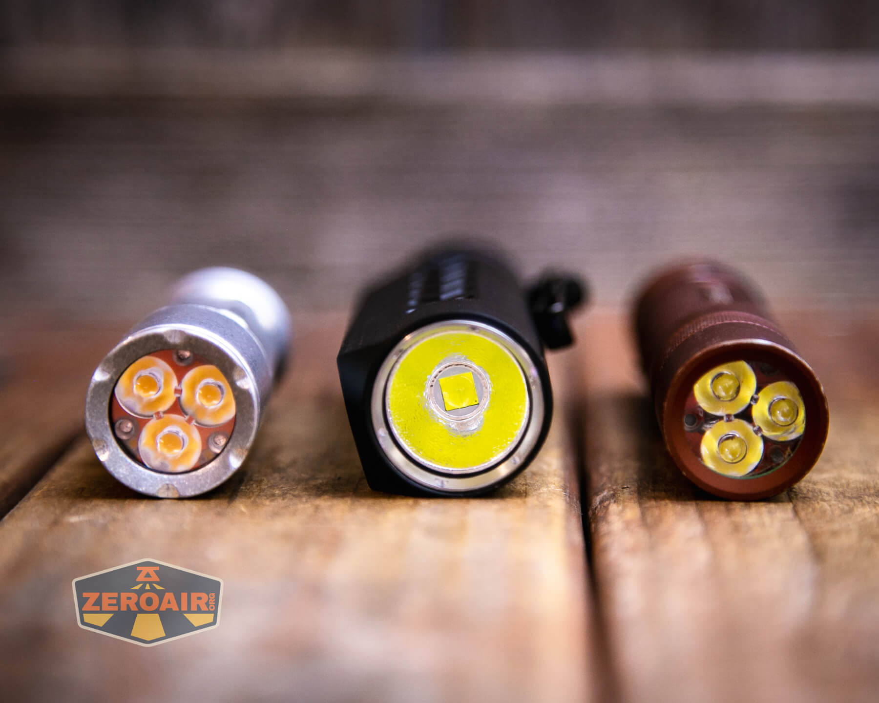 Also above on the left is a new feature light!! Laulima Metal Craft sent this Todai in tumbled aluminum for some size comparison photos like the ones above. Laulima has a bunch of incredible items. I’ve tested one (the Laulima Metal Craft Hoku) (the official site for Hoku is here) that was a Friend Fund Friday review. I was impressed enough by that Hoku that I bought a Laulima Metal Craft Diamond Slim (also in tumbled aluminum) (review is upcoming!) These lights by Laulima have impeccable build quality and not only that, they’re quite configurable. There are some (great, actually) default configurations, but Joshua Dawson (of Laulima Metal Craft) is open to ideas and emitter options and the like. I haven’t reviewed this Todai, but I have to say, it feels absolutely fantastic and I love it thus far. (Notably, I love how warm and eggy those emitters look through the TIR.)