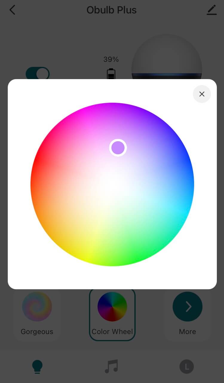The Color Wheel option allows selection of any specific color (which can also then be controlled for brightness.)