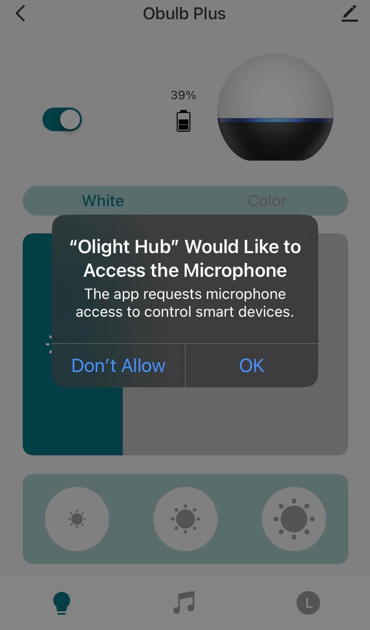 I initially didn’t know what microphone access was for – can this be used like an Alexa or something? No, it’s so the Olight Obulb Pro S lantern can respond to music!