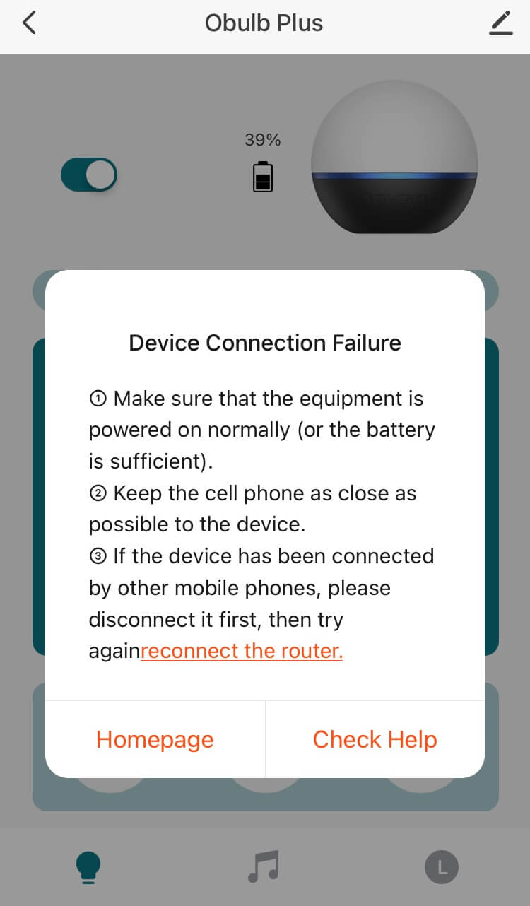 The screen below seemed to happen off and on. I just clicked out and around to escape it, and the Obulb Pro S connected quickly.