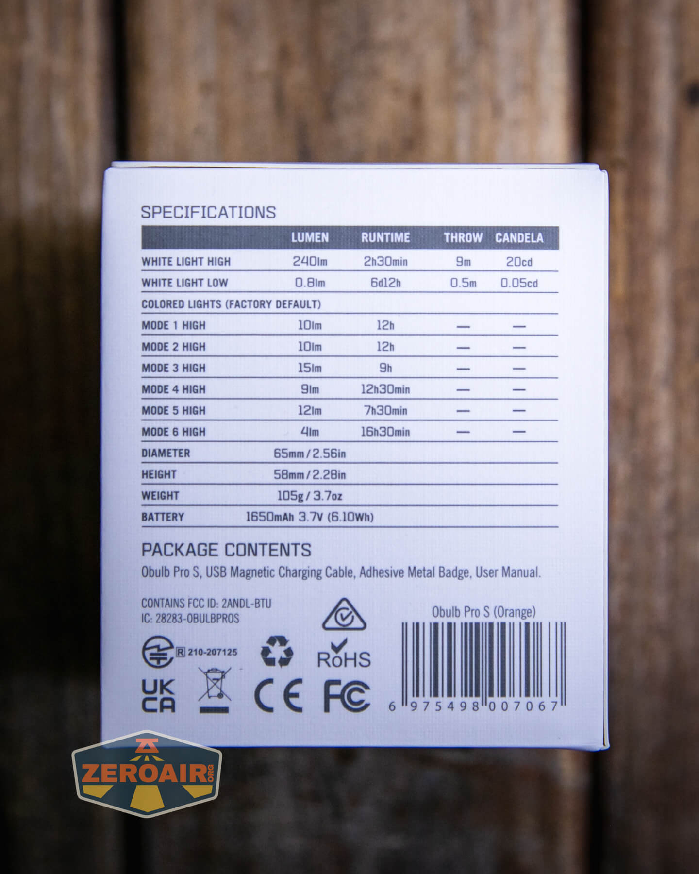 While I don’t have any runtime tests for the Olight Obulb Pro S Lantern, I can say that the internal (built-in, nonreplaceable) battery is much bigger than on others like the Obulb MC. The MC is 630mAh, while this Pro S version is 1650mAh.