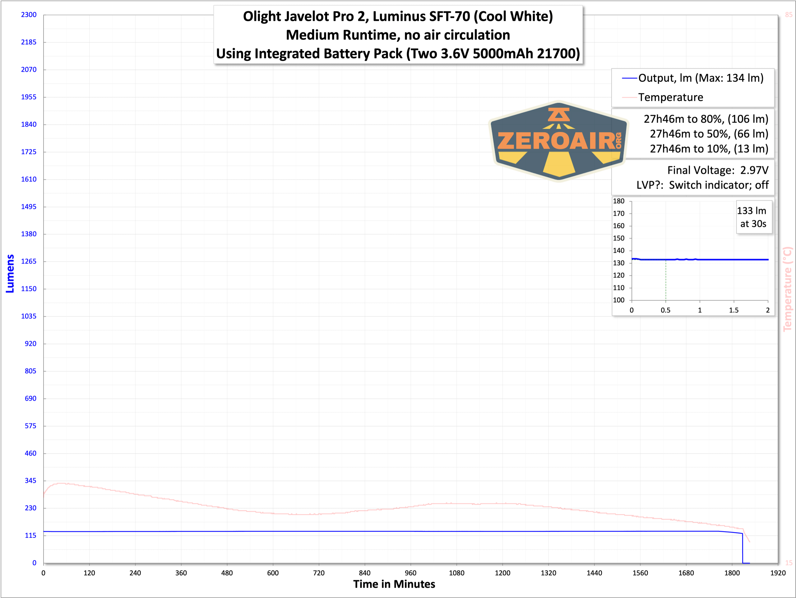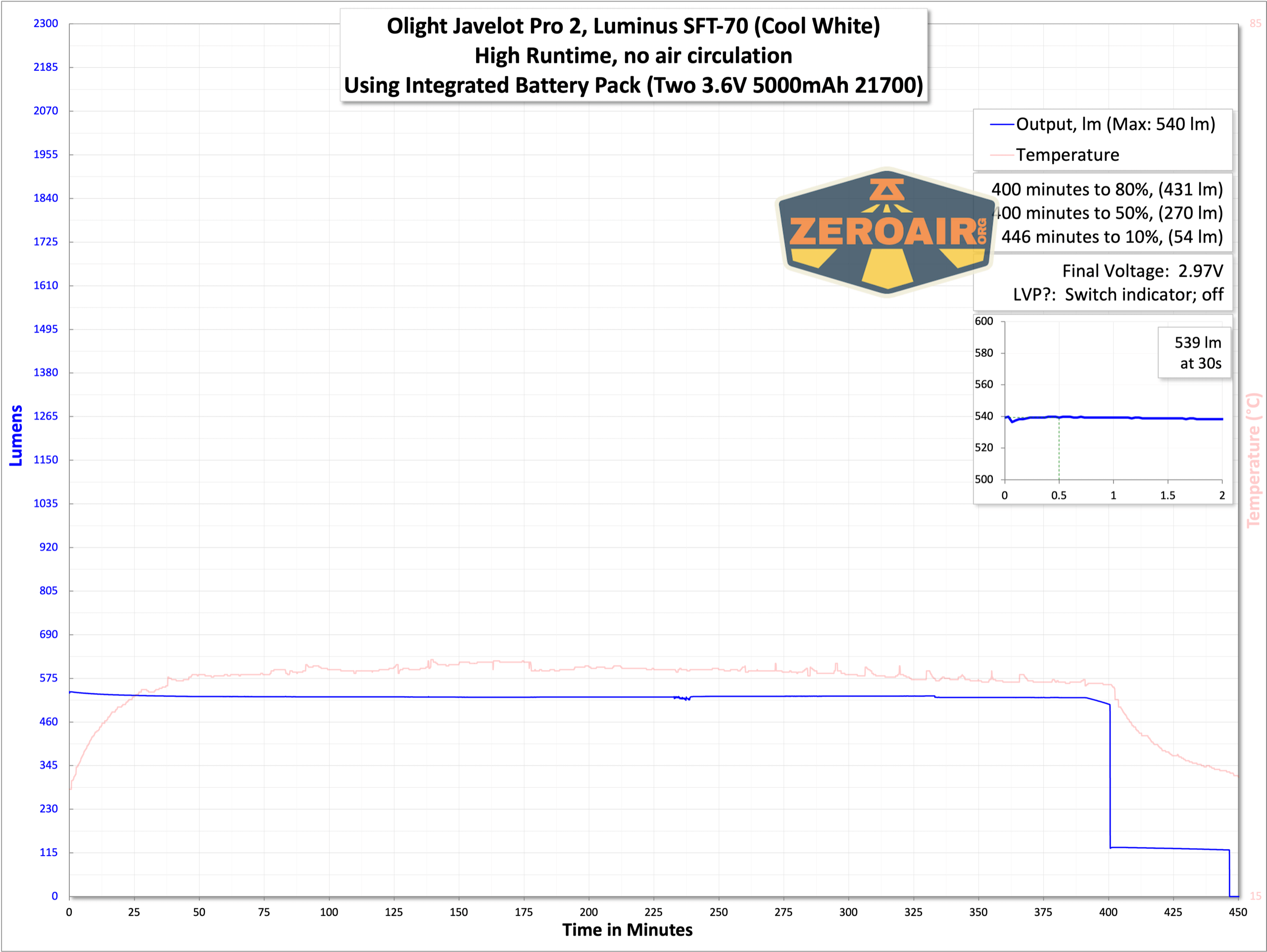 | Measured Lumens (at 30s) | 2202 (88.1% of claim)^ |