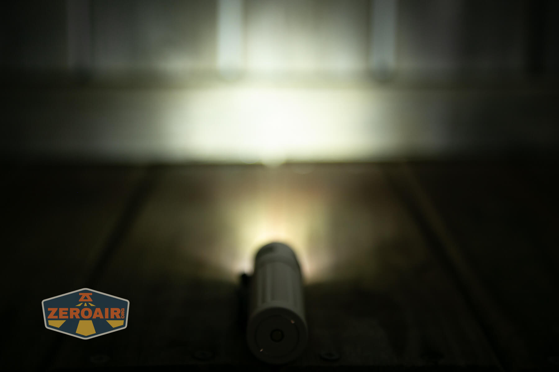 Here’s the test light with the venerable Convoy S2+. Mine’s a custom “baked” edition Nichia 219b triple. A very nice 18650 light.