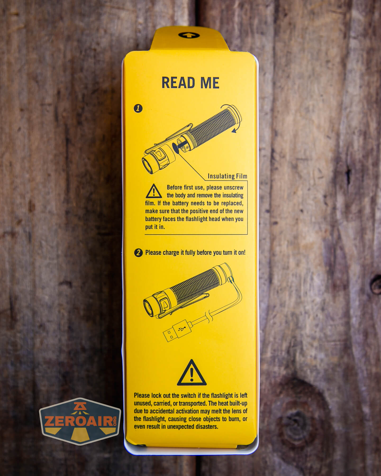 Olight provides this L-bracket with some 3-M adhesive so that you can store the light … in places. This is not a charge base, and a charging base can’t really be added to this. It’s simply a sticky metal bracket. I could do with out this – I have plenty of metal around in the right places for this purpose, but if you really needed it somewhere very specific, I can see it being very useful.