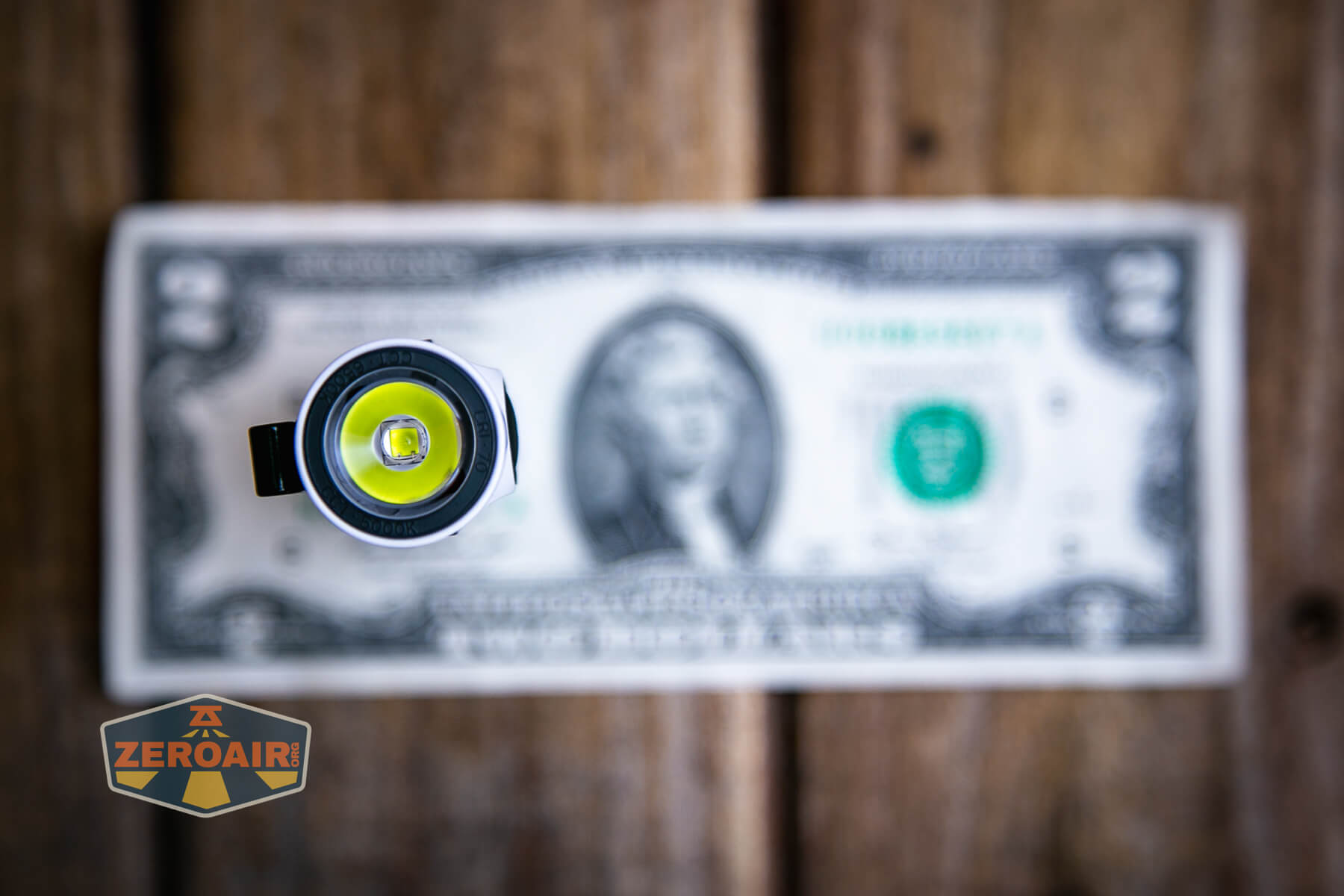 This light includes a pocket clip. The pocket clip has a specific place and orientation – just opposite the switch. This is a two-way clip, so technically could be carried bezel up or down, but the only reasonable way is really bezel up. Though the pocket clip is opposite the switch, I didn’t have any problems with accidental activation, and I didn’t tend to lock the light out.