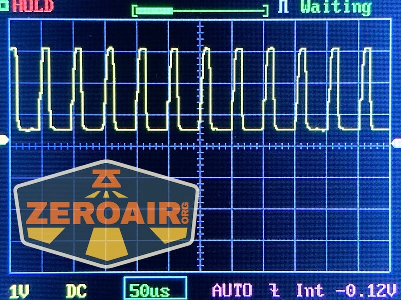 Then there’s the Ultrafire WF-602C flashlight, which has some of the worst PWM I’ve seen. It’s so bad that I used a post about it to explain PWM! Here are multiple timescales (10ms, 5ms, 2ms, 1ms, 0.5ms, 0.2ms) to make comparing this “worst” PWM light to the test light easier. That post also explains why I didn’t test the WF-602C at the usual 50us scale.