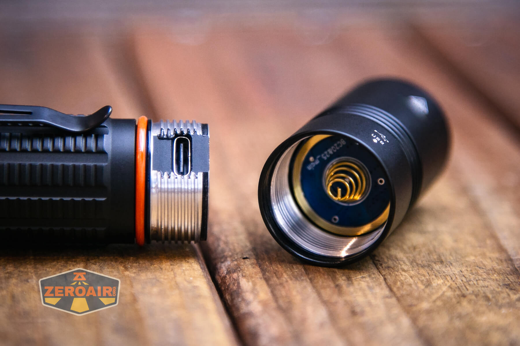 The JETBeam BC20 TAC tactical flashlight uses an interesting charging mechanism. It’s a typical USB-C charge port, but the head must be completely removed in order to gain access to this port. While this does protect the integrity of the charging port, it also sort of defeats the purpose of a built-in charging port in general.