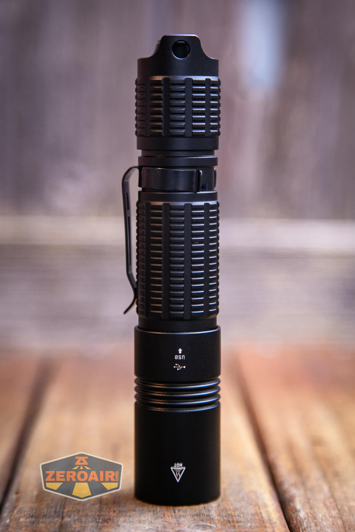Often people wish for a single-mode flashlight. If you need that in a tactical way, this is a great choice. Provided you have the head tightened you can always have the highest output (and only the highest output). If you do need other modes, you can just loosen the head a bit. It’s an interesting and effective setup. I would love a less cold emitter, and this one seems particularly cold. USB-C charging works acceptably on this light, too, but is quite slow.