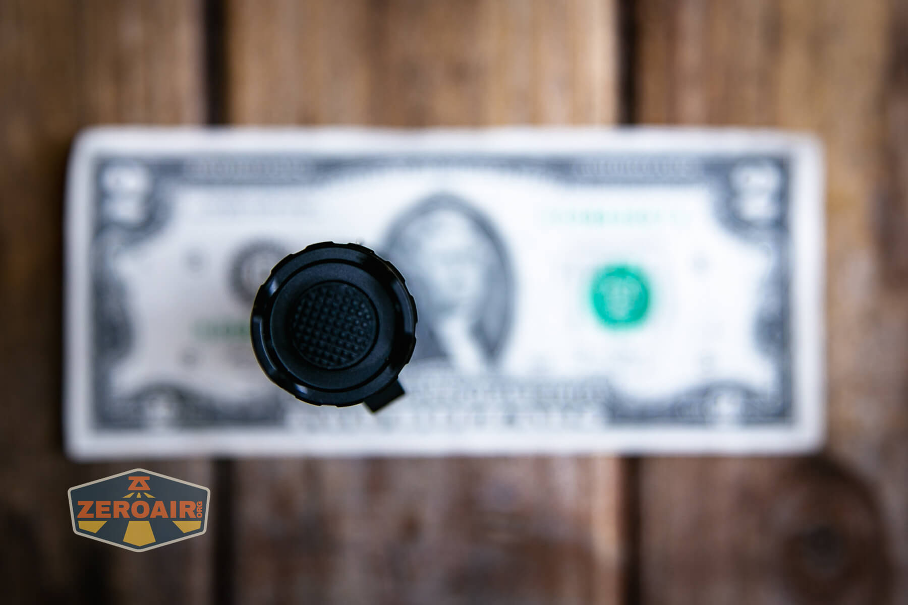The bezel is flat, so light doesn’t escape when headstanding. This also means that there are no teeth, a feature commonly seen on tactical flashlights.