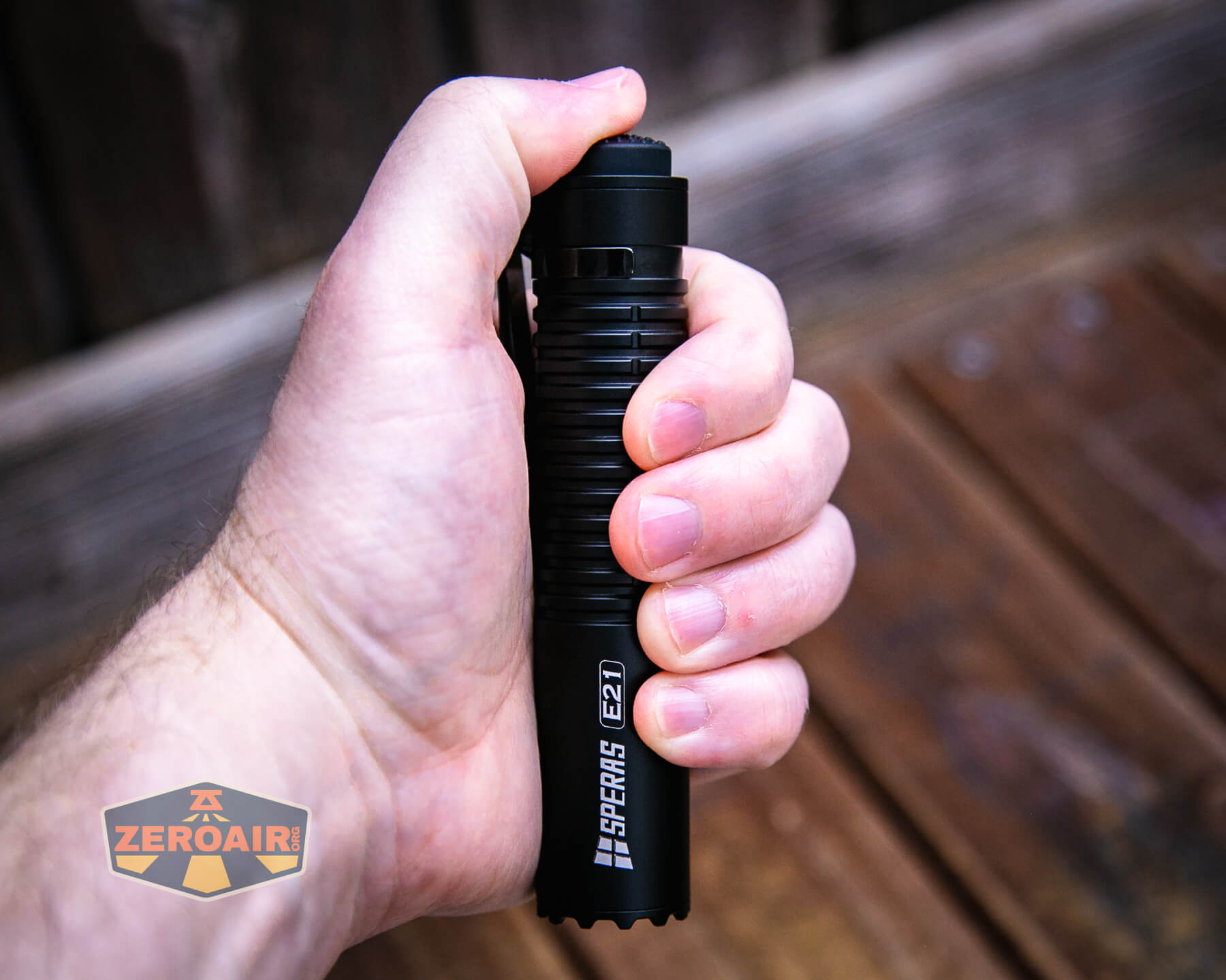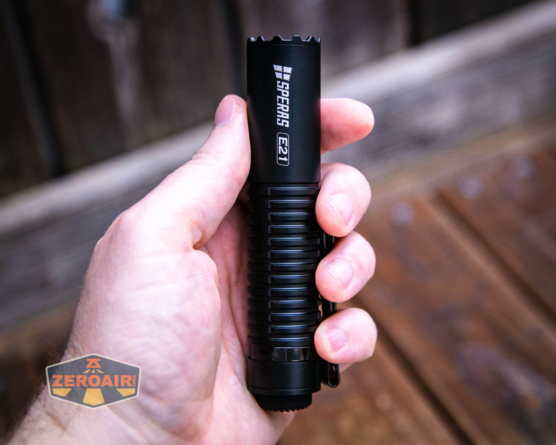 The E21 is my first Speras flashlight. I’ve never seen or held one before. Initial impressions are good; the light seems solid.