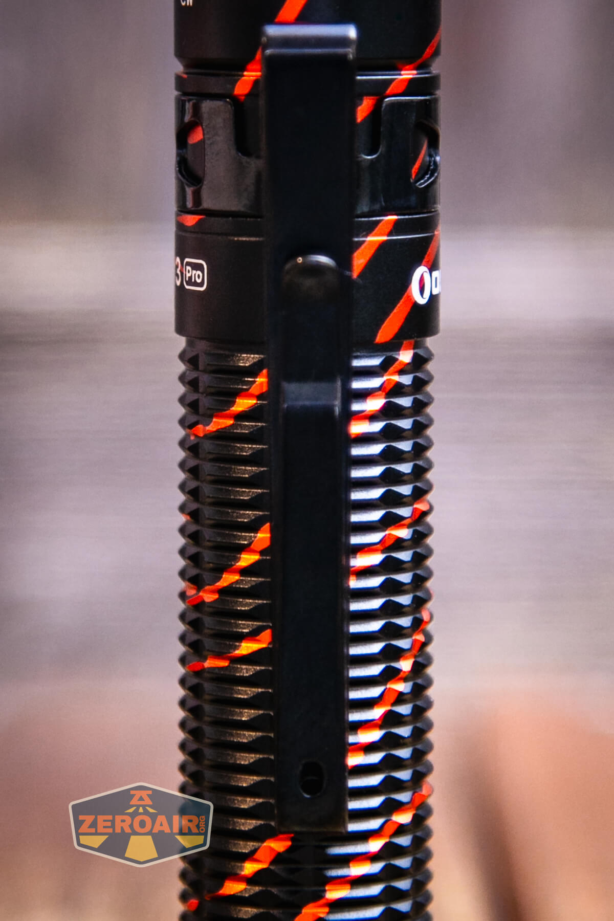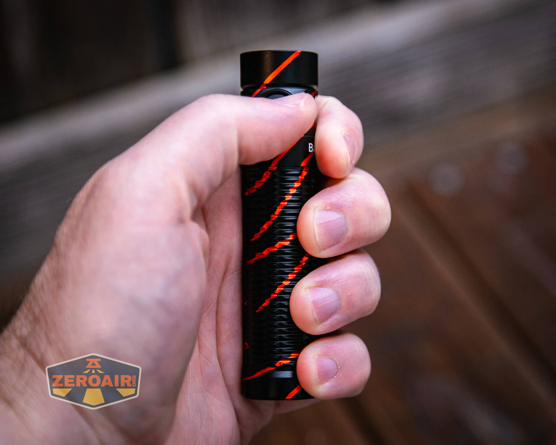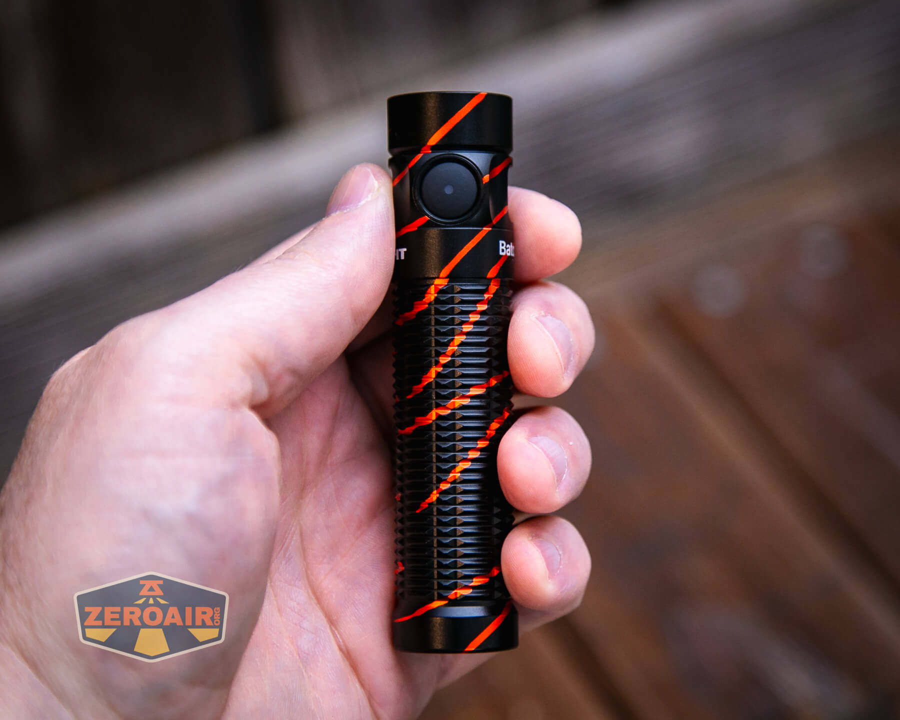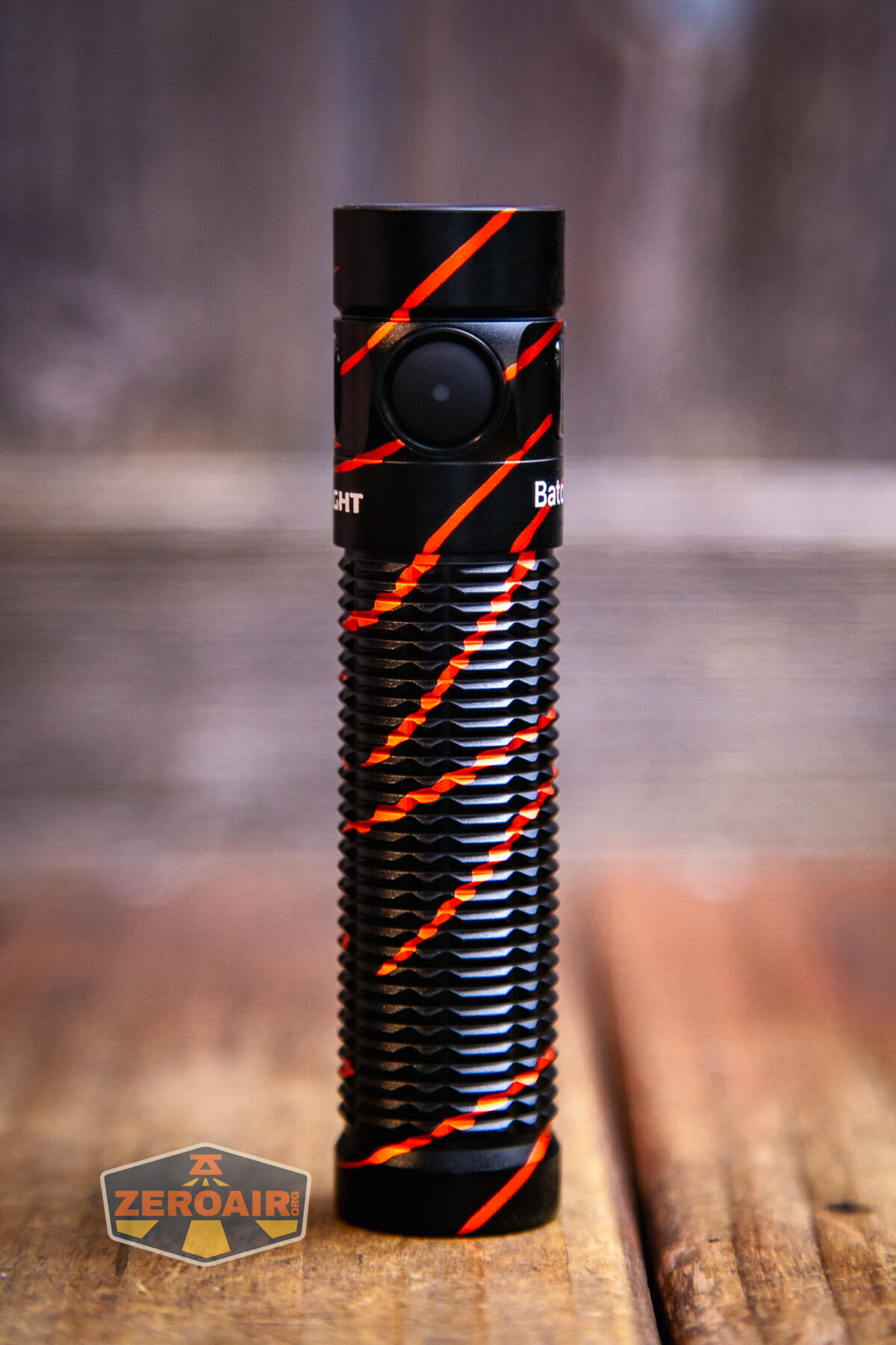The rest of the light is fairly standard. Batons are great! I’m a massive fan of Batons. The Black Lava finish is quite neat, and I have no complaints about that. Orange might be awesome in place of those red stripes. 🙂