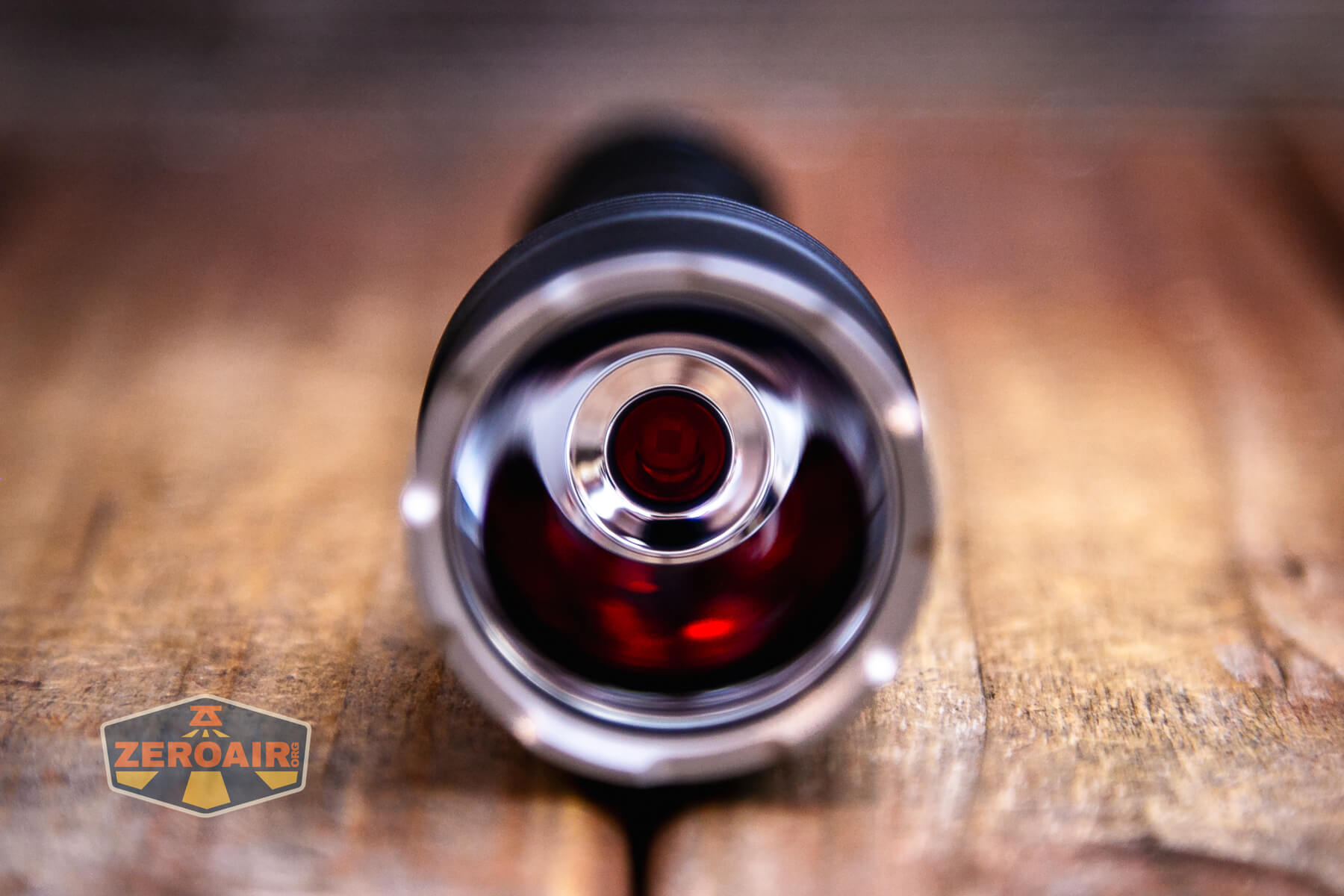 The emitter is a Luminus SFT-40-W. A deep and smooth reflector is used here. At the very bottom is the emitter. When in “white” mode, there’s another tiny reflector very close to the emitter.