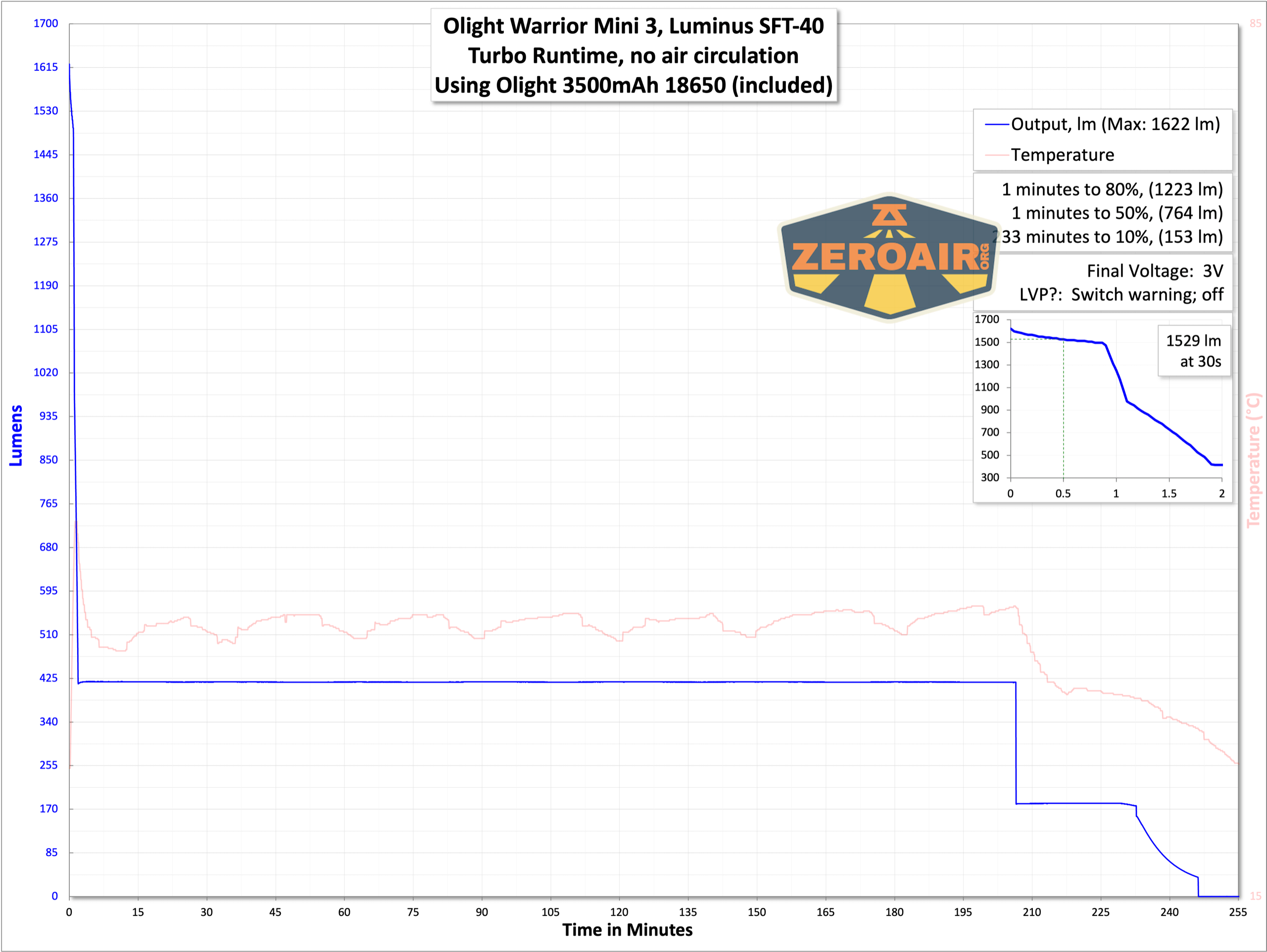 | Measured Lumens (at 30s) | 1529 (87.4% of claim)^ |