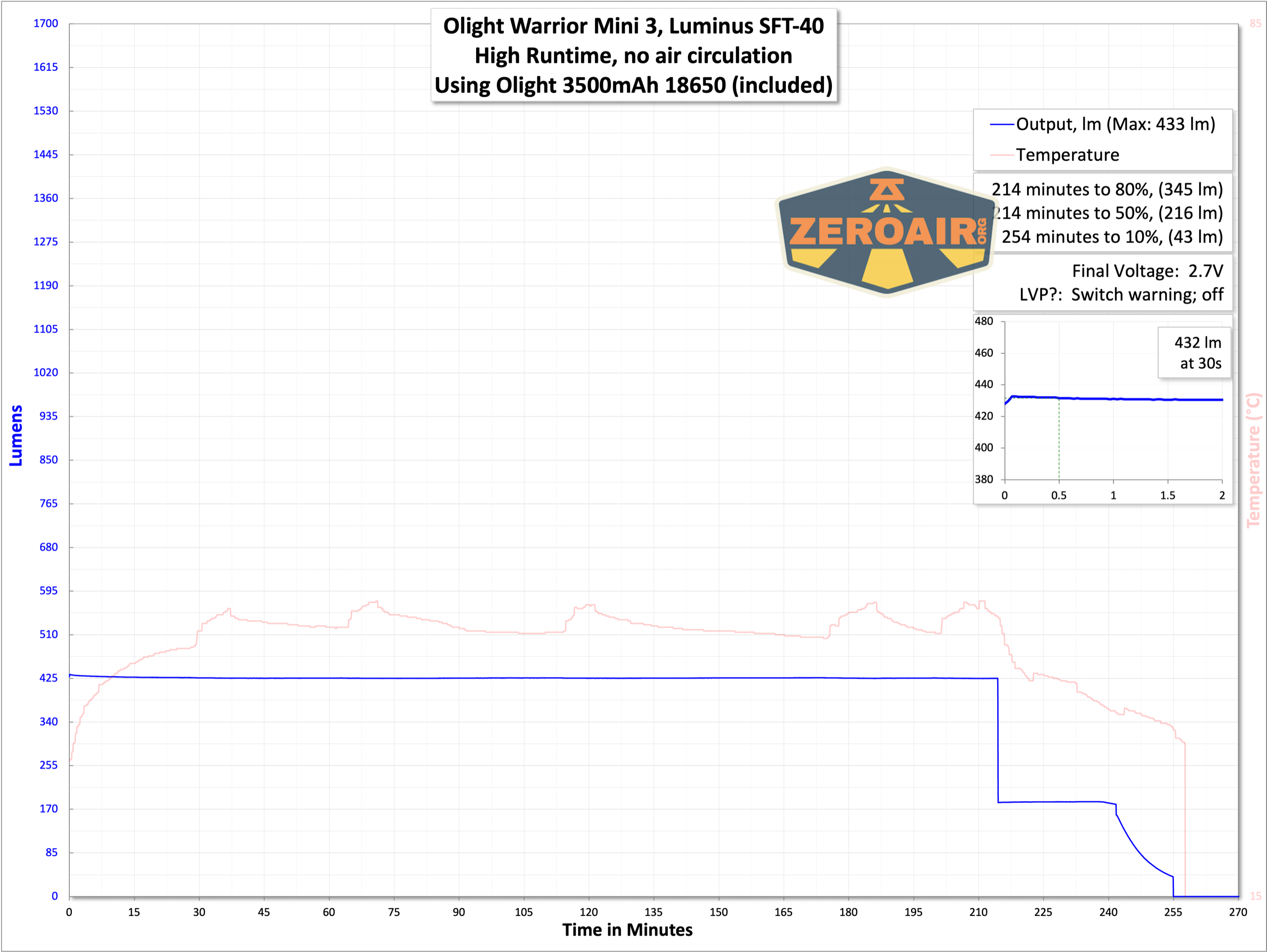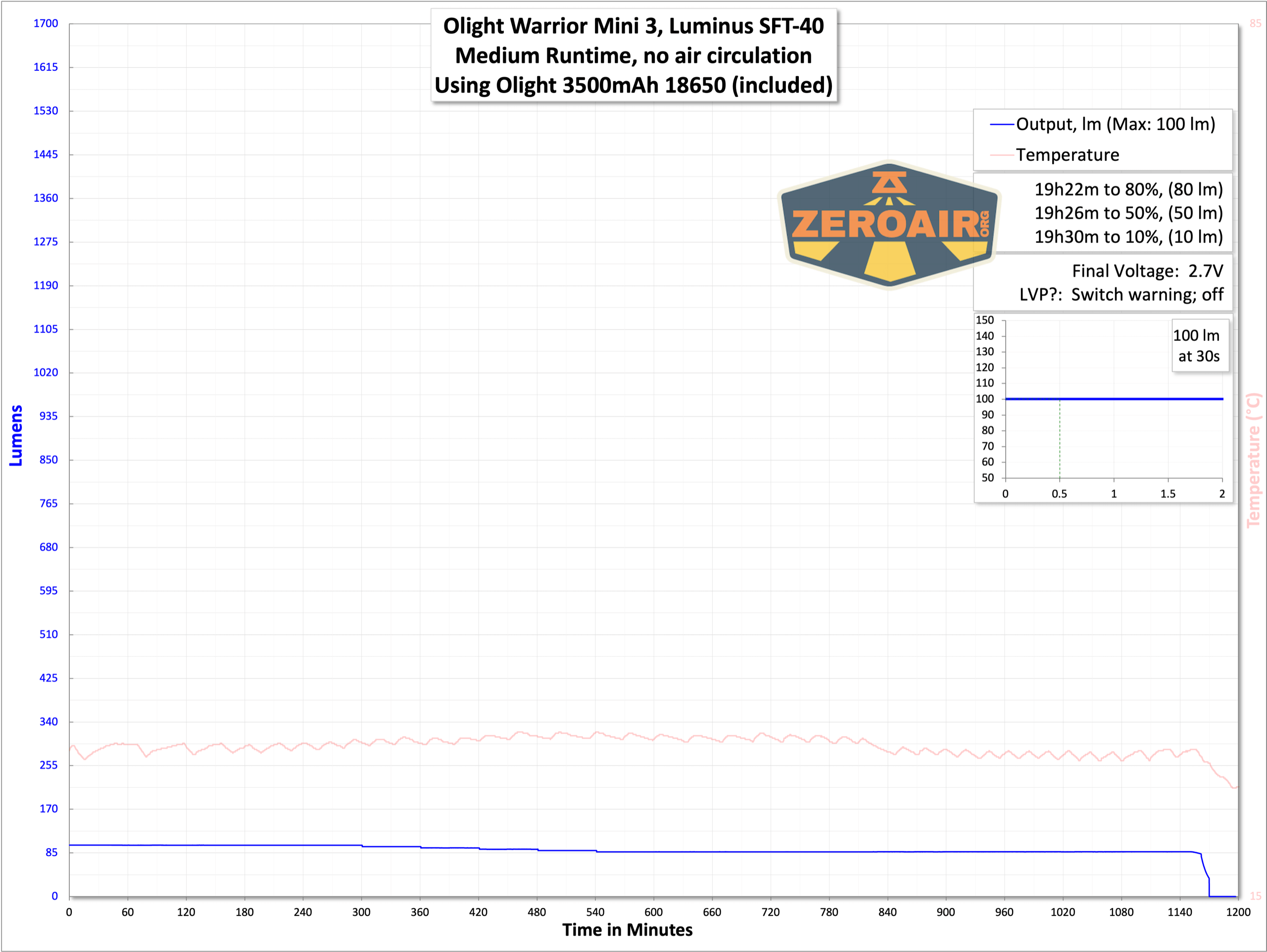 Below you can see the runtime tests for the highest three levels. If you glanced back at the Baton 3 Pro testing posts, you’d note that performance is remarkably similar. Internally, I’d guess the Warrior Mini 3 is very similar to the Baton line!