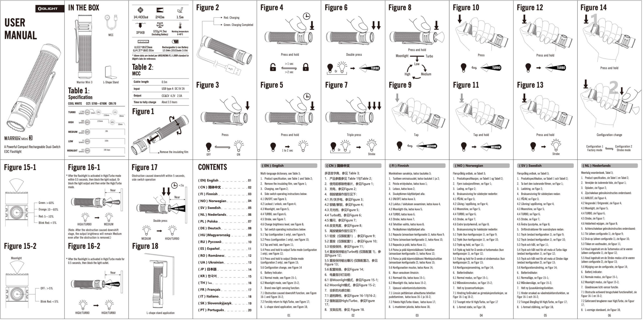 - Olight MCC 1A/1.5A/2A charger (USB to proprietary magnetic)