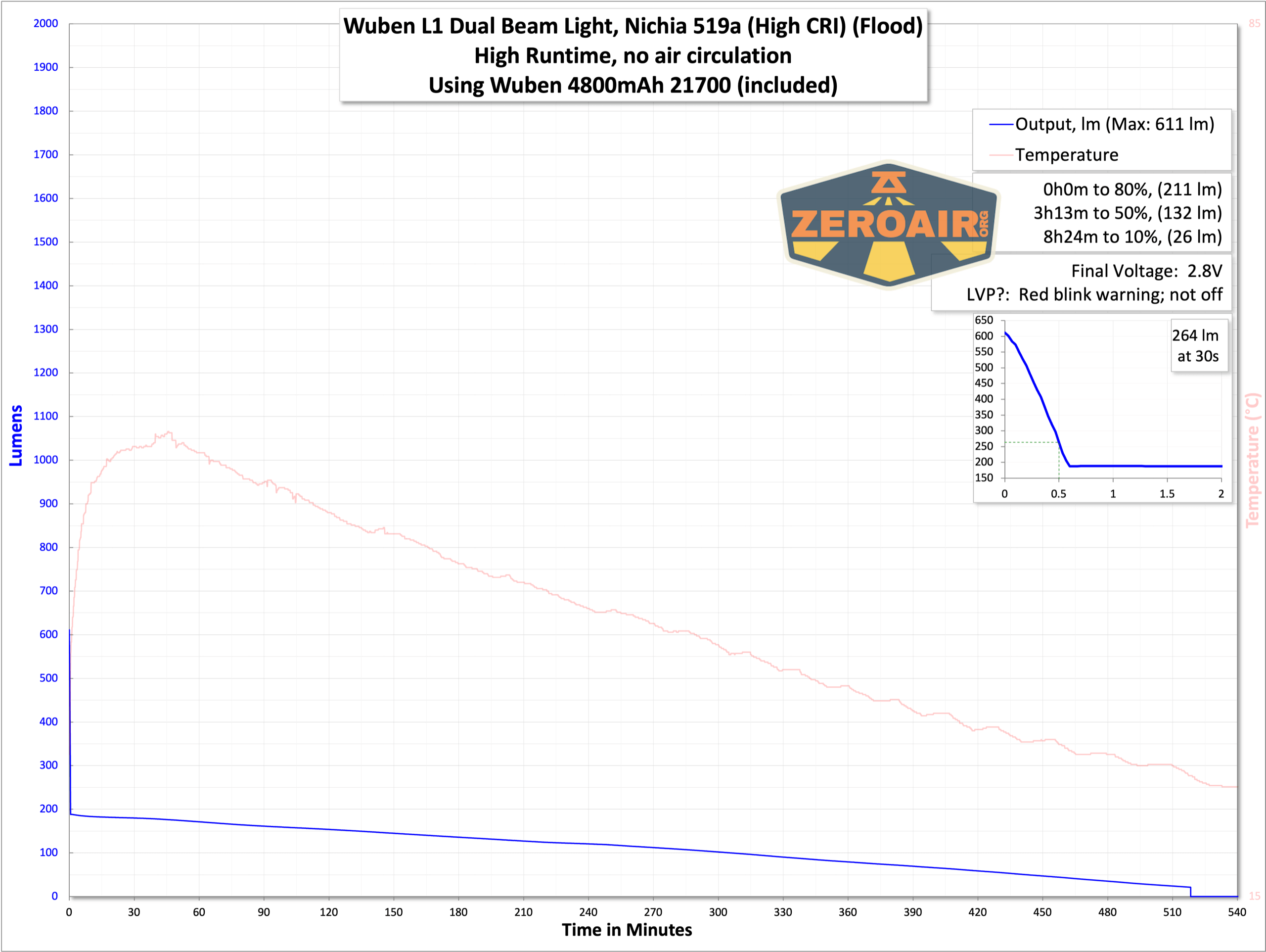 | Measured Lumens (at 30s) | 1146 (57.3% of claim)^ |