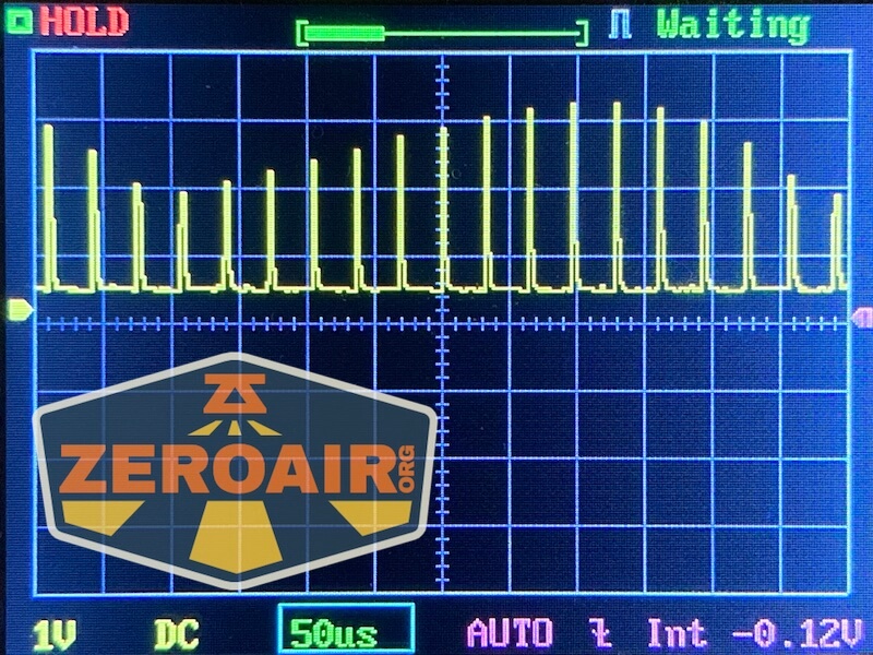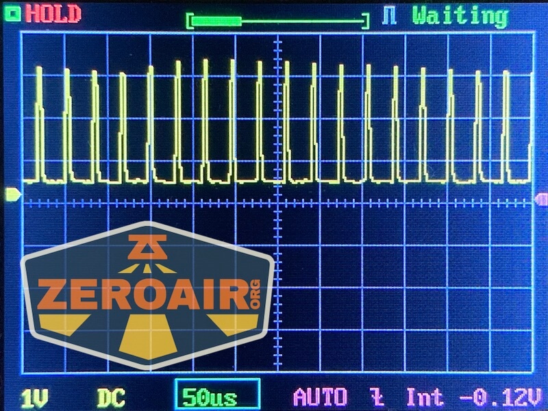 Here you can see a “baseline” – a chart with almost no light hitting the sensor. Then there’s the Ultrafire WF-602C flashlight, which has some of the worst PWM I’ve seen. It’s so bad that I used a post about it to explain PWM! Here are multiple timescales (10ms, 5ms, 2ms, 1ms, 0.5ms, 0.2ms) to make comparing this “worst” PWM light to the test light easier. That post also explains why I didn’t test the WF-602C at the usual 50us scale.
