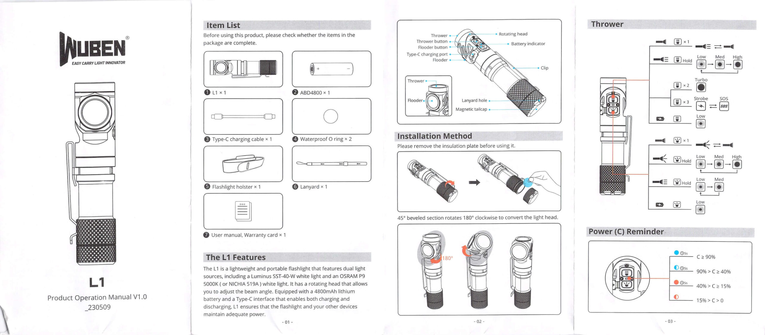 - Wuben L1 dual beam flashlight