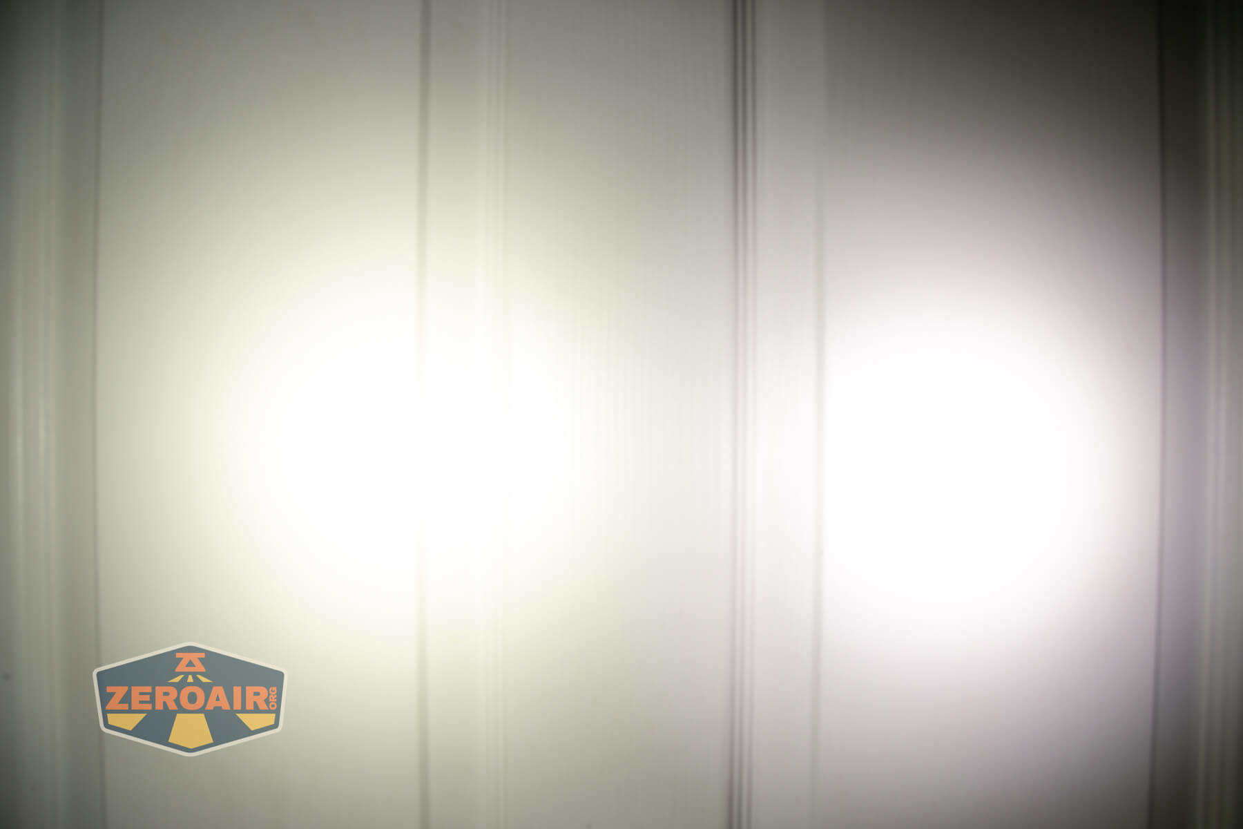 Here’s the test light with the venerable Convoy S2+. Mine’s a custom “baked” edition Nichia 219b triple. A very nice 18650 light.