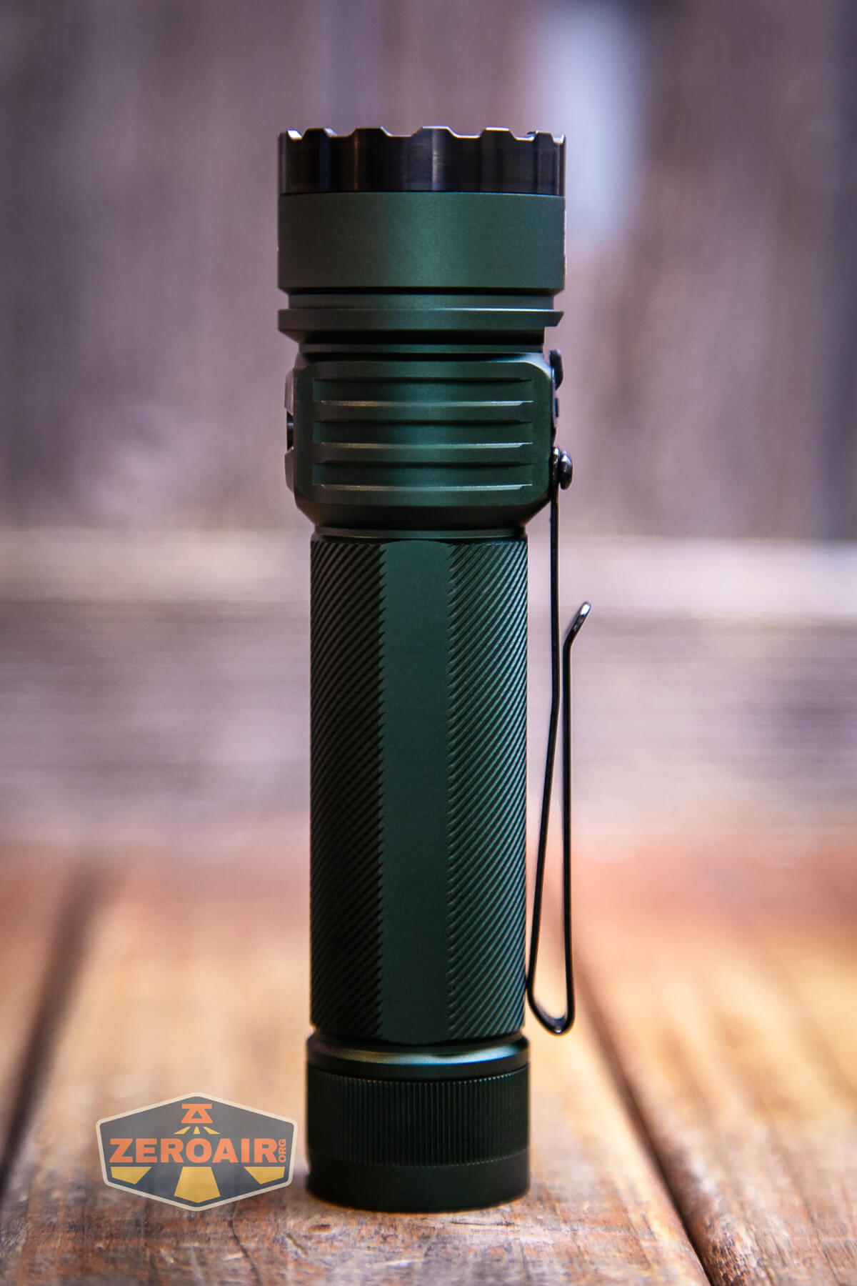 If the flashlight will headstand, I’ll show it here (usually the third photo). If the flashlight will tailstand, I’ll also show that (usually in the fourth photo).