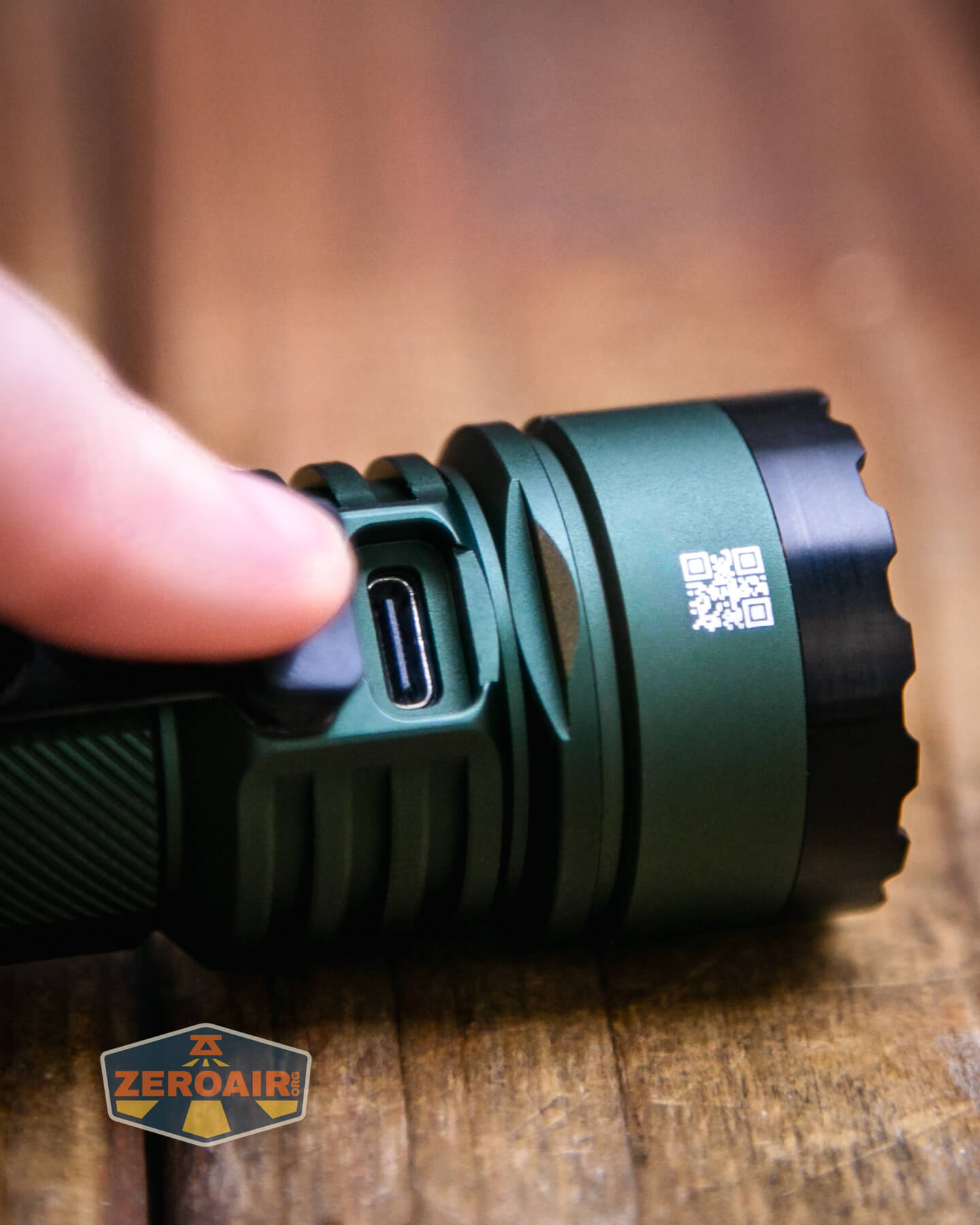Acebeam incorporated USB-C charging into the E75 itself. The charging port is in the head and is protected by a press-in silicone cover that again, is secured further by the screw-in pocket clip.