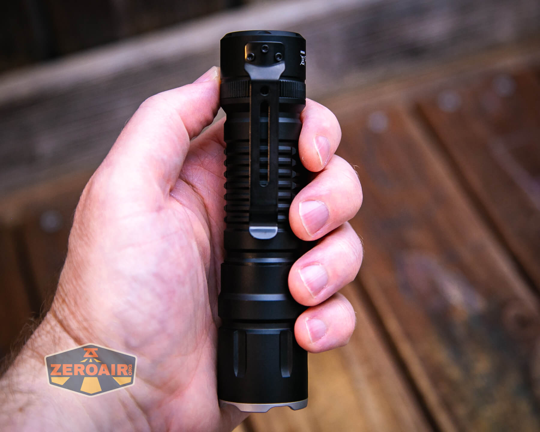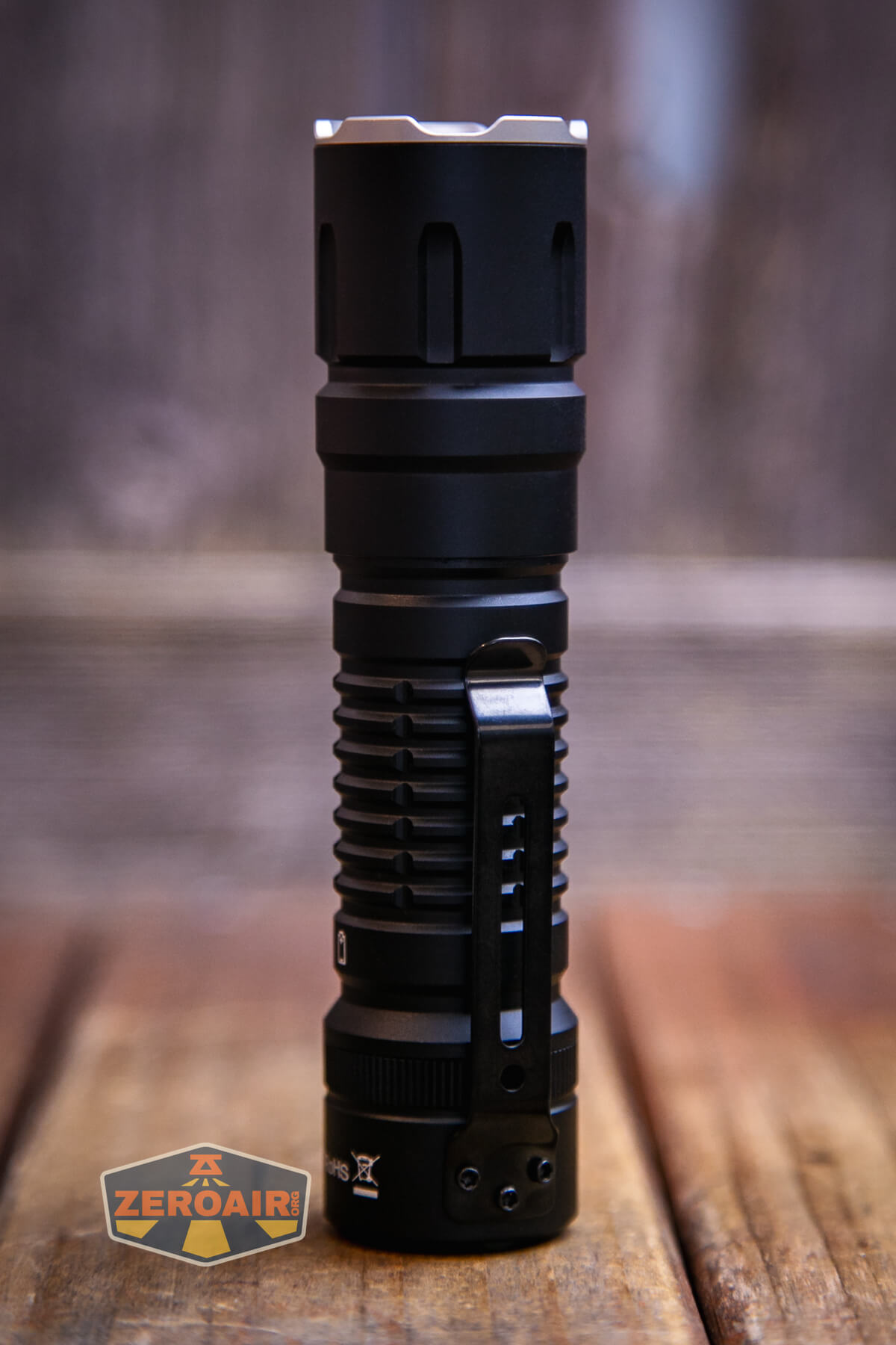 If the flashlight will headstand, I’ll show it here (usually the third photo). If the flashlight will tailstand, I’ll also show that (usually in the fourth photo).