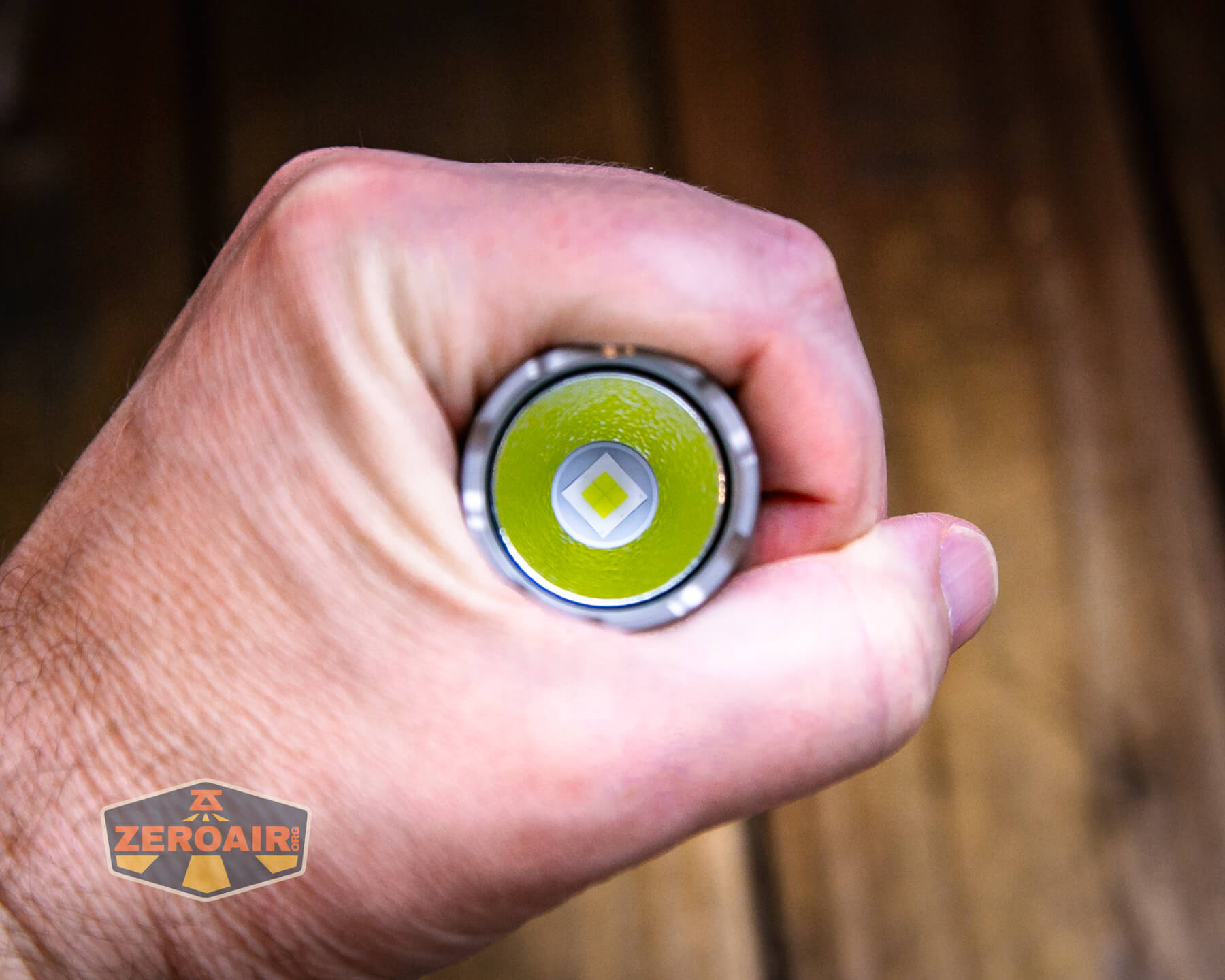 Sofirn says this emitter is a Cree XHP70D HI. There’s an orange peel reflector to go along with that, too.