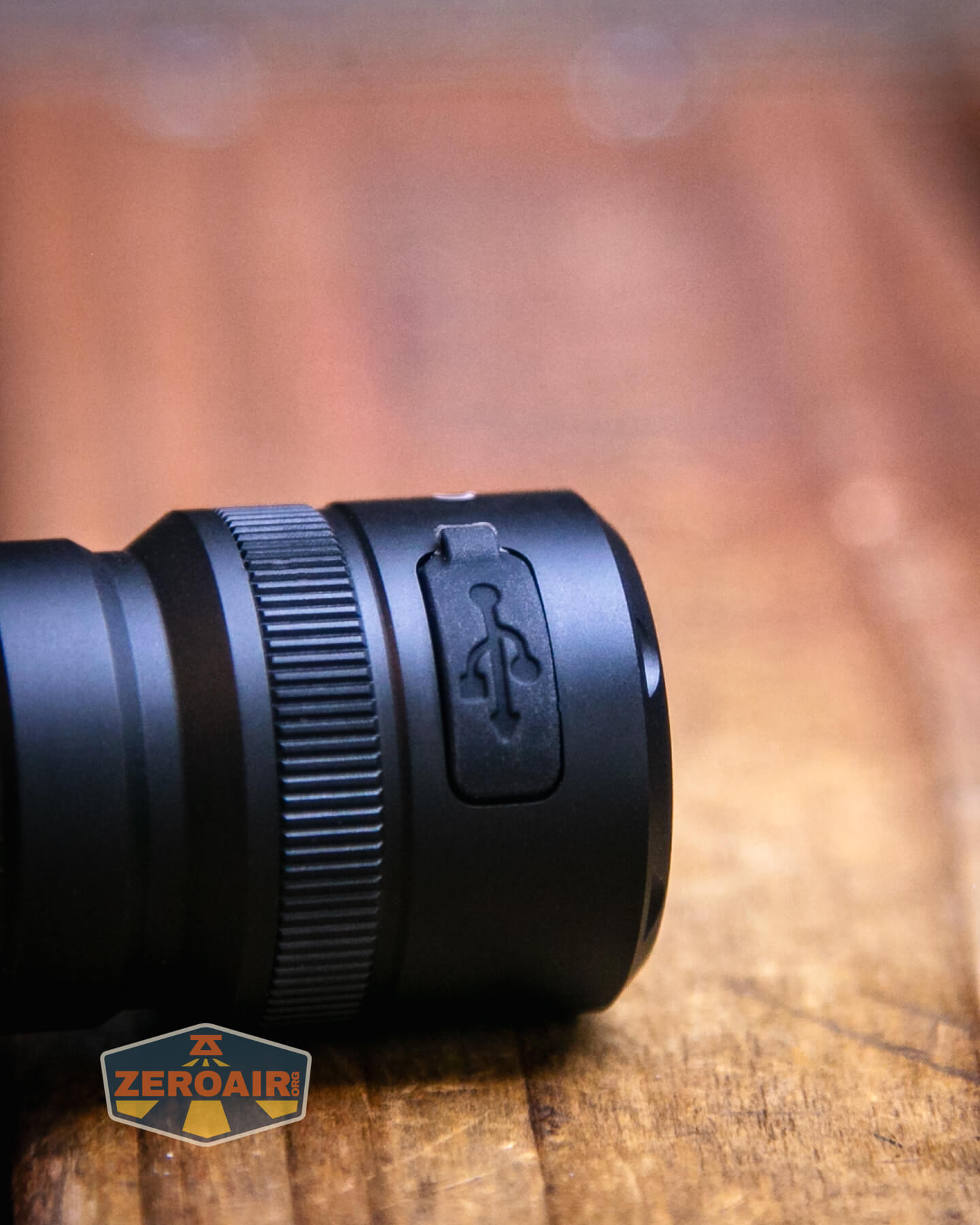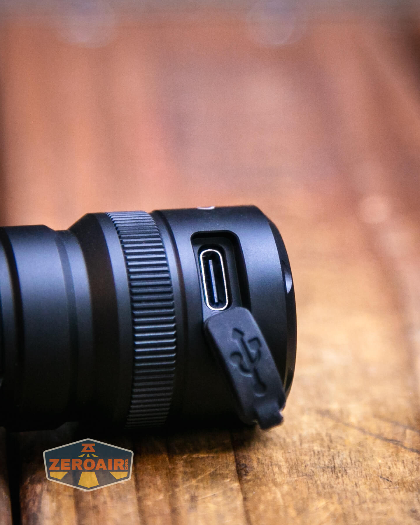 Built into the tail of the Sofirn SC33 EDC flashlight is a USB-C charging port.