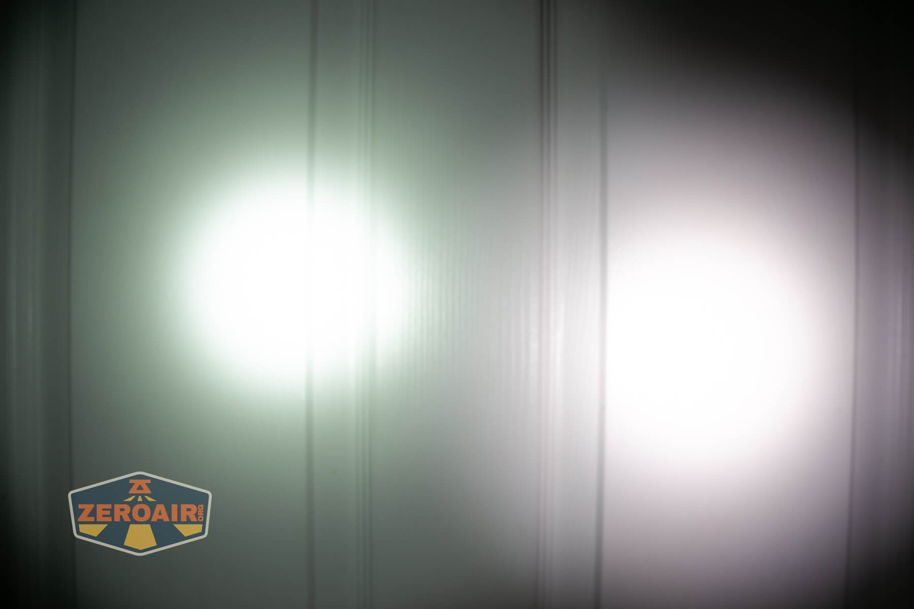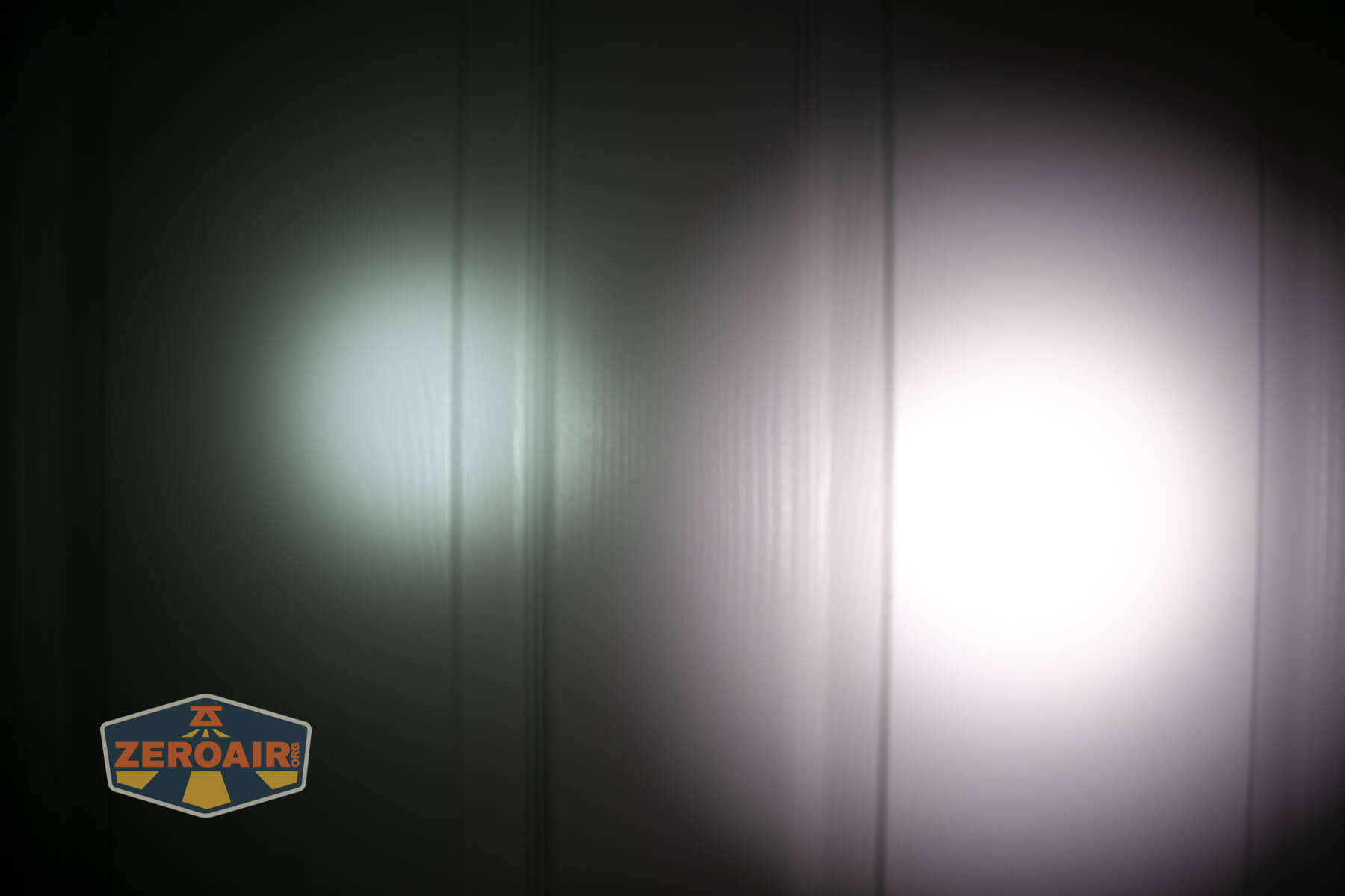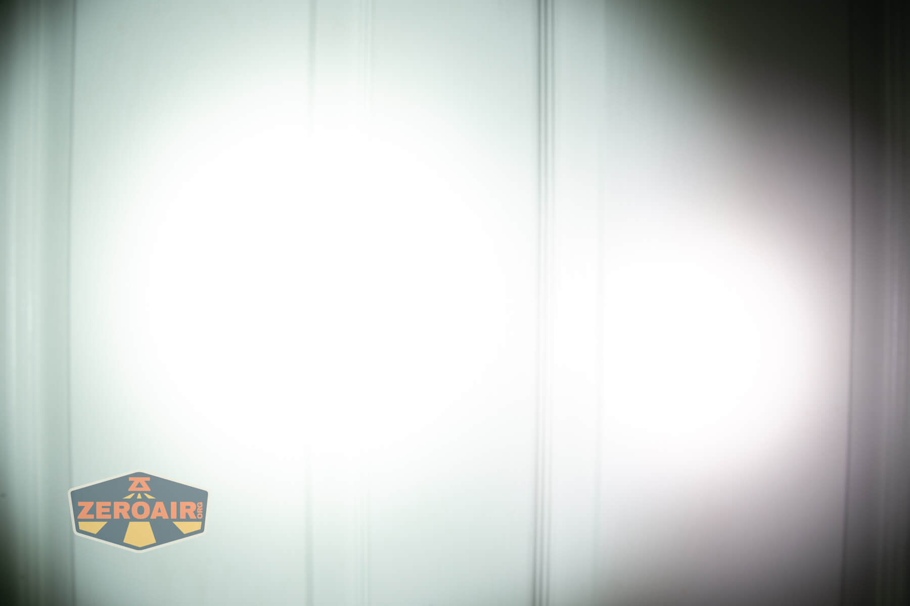 Here’s the test light with the venerable Convoy S2+. Mine’s a custom “baked” edition Nichia 219b triple. A very nice 18650 light.