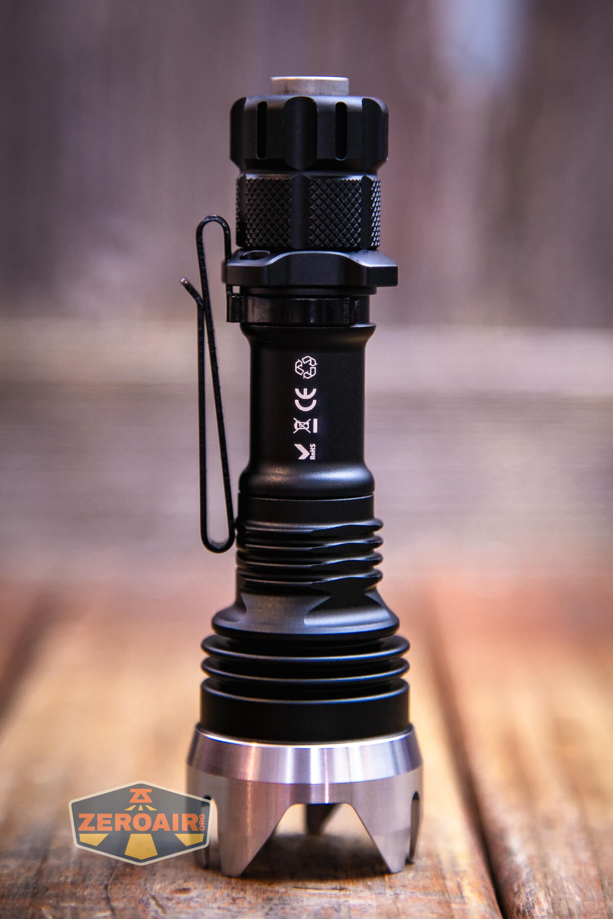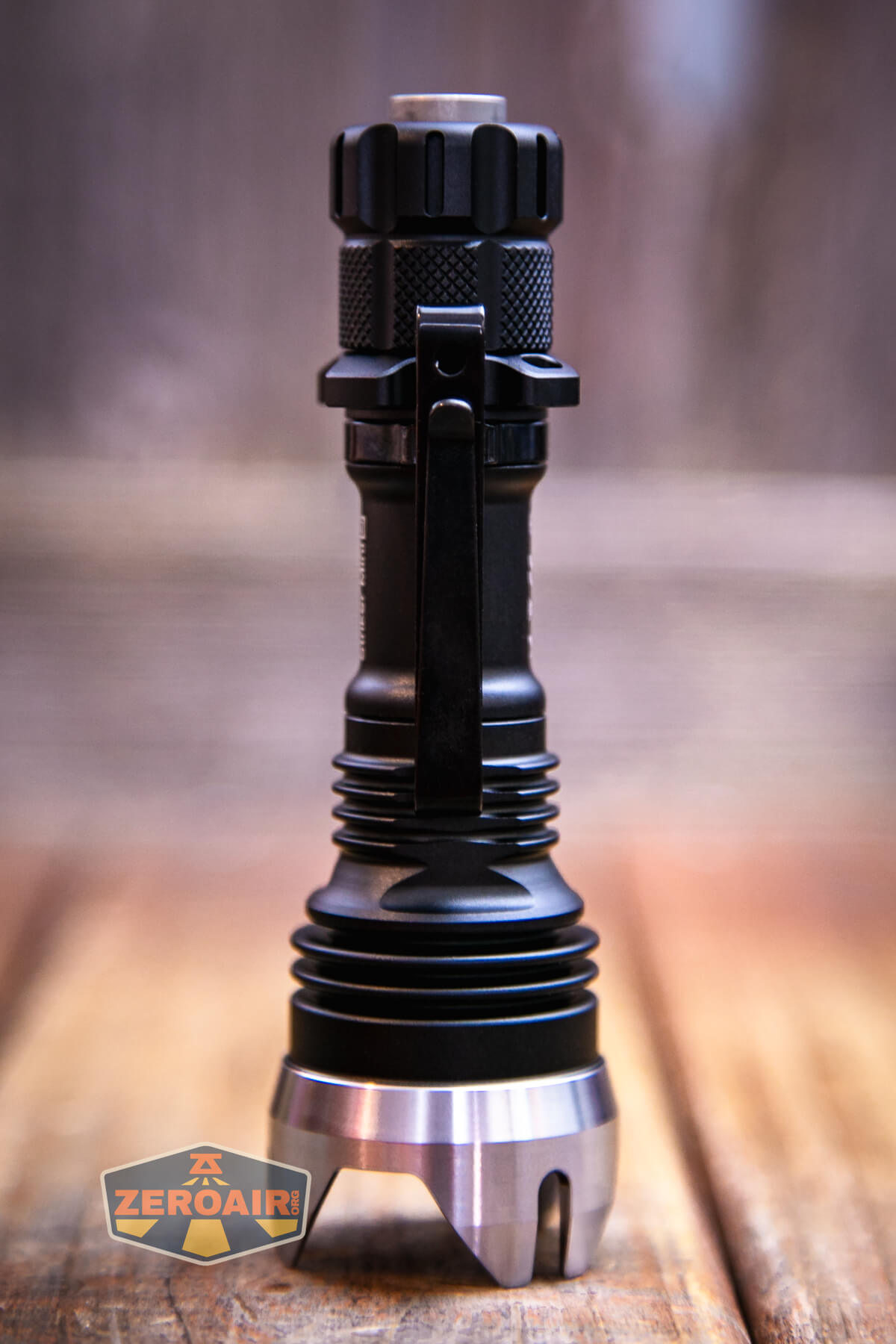 If the flashlight will headstand, I’ll show it here (usually the third photo). If the flashlight will tailstand, I’ll also show that (usually in the fourth photo).