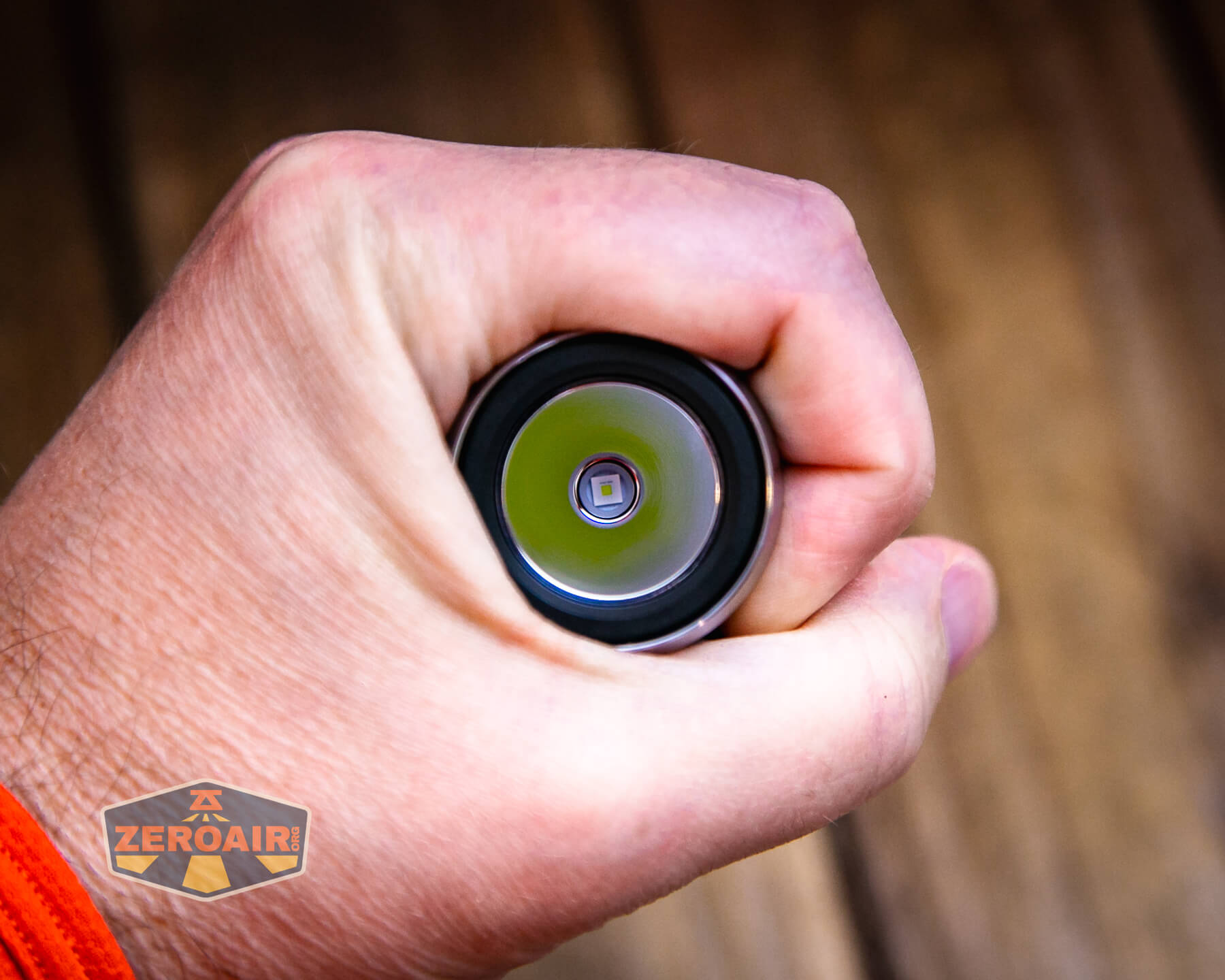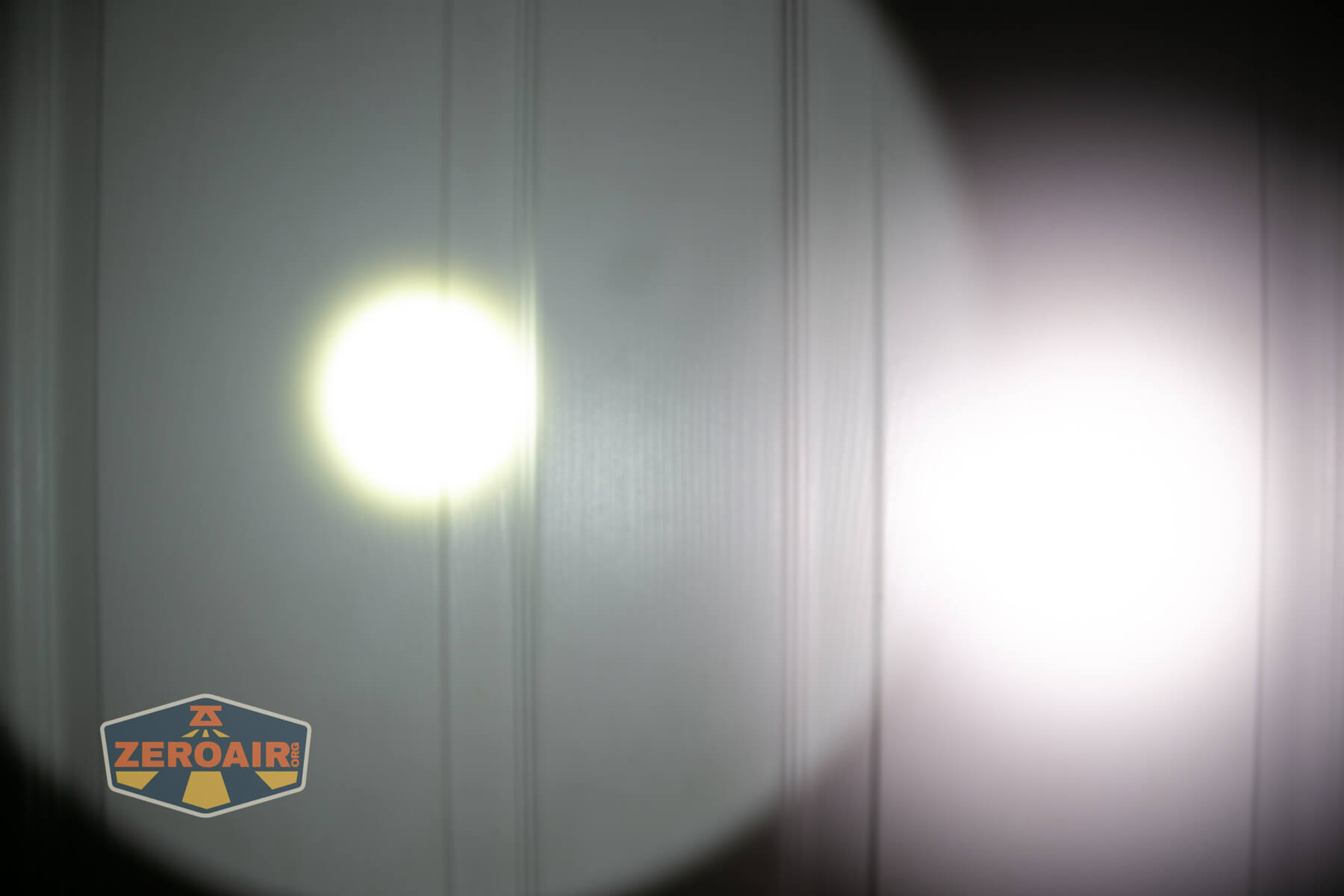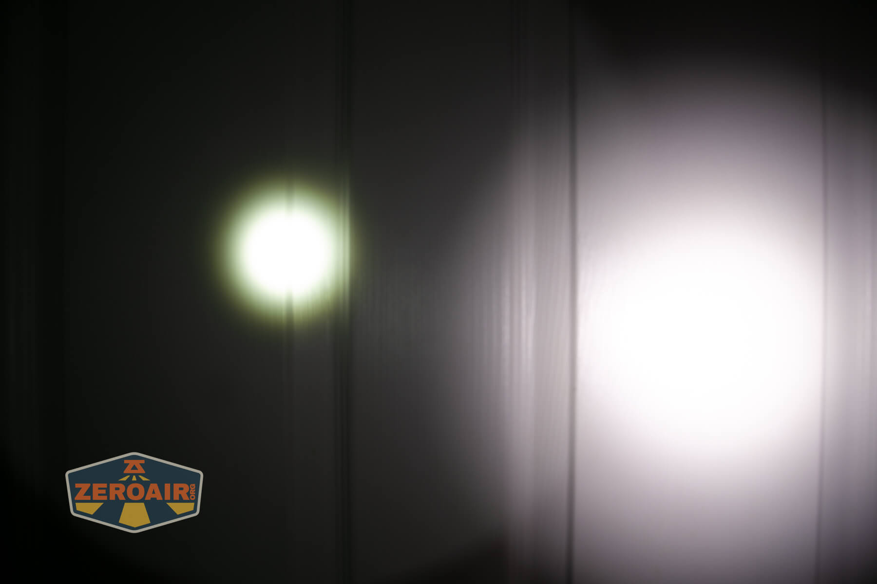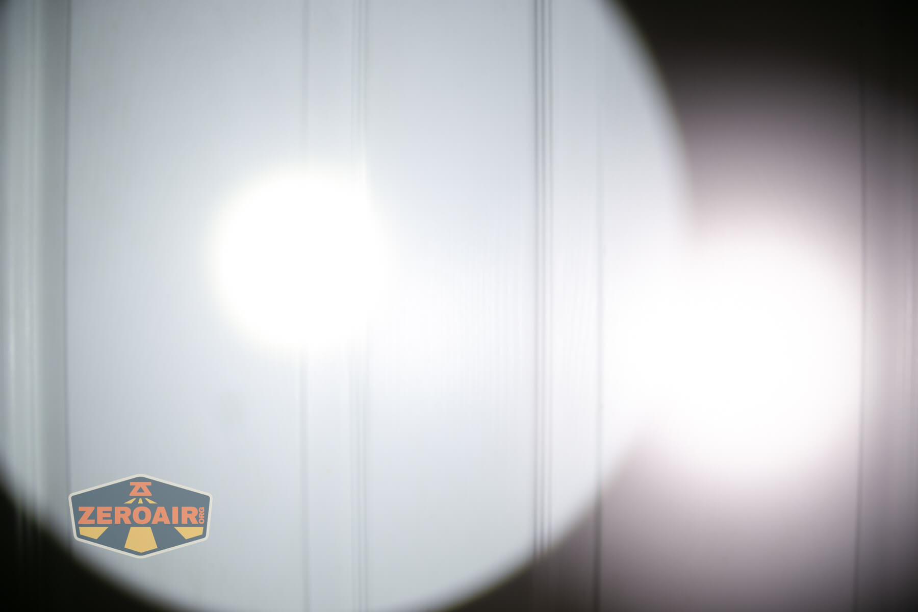 Here’s the test light with the venerable Convoy S2+. Mine’s a custom “baked” edition Nichia 219b triple. A very nice 18650 light.