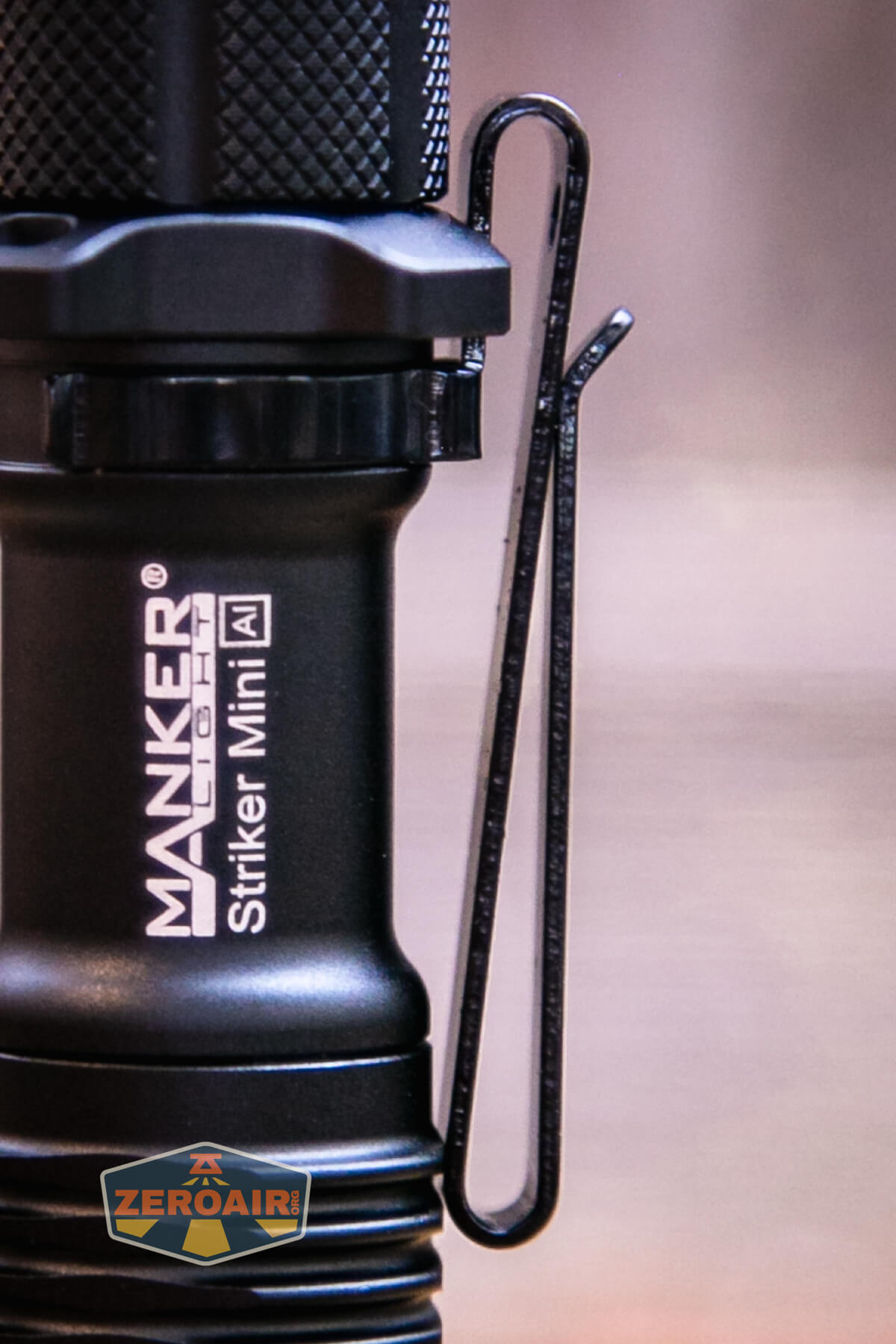 There are a couple (or few, even) ways to carry the Manker Striker Mini aluminum flashlight. First is the pocket clip, which comes attached to the light.
