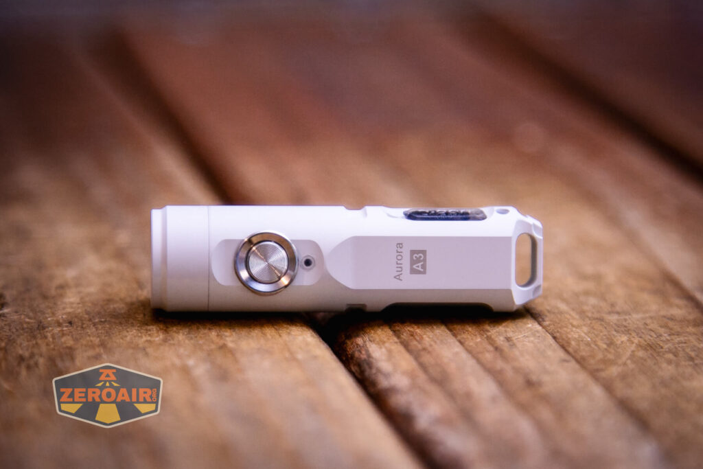 There’s a single side switch for operating the RovyVon Aurora A3 MAO flashlight. It’s a clicky e-switch.