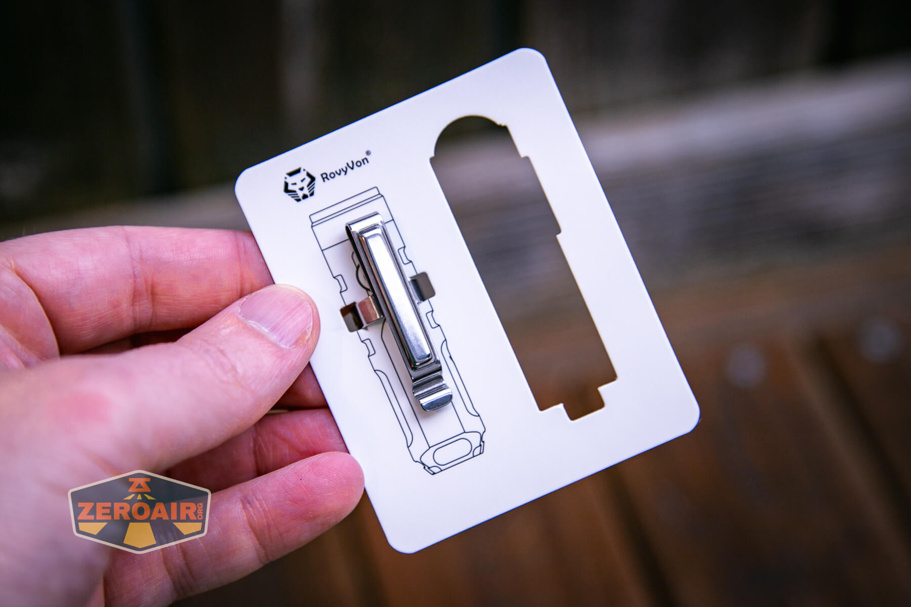 I had sort of missed this point before but this card holding the pocket clip really shows the ideal (and maybe “intended”) attachment point to the light.