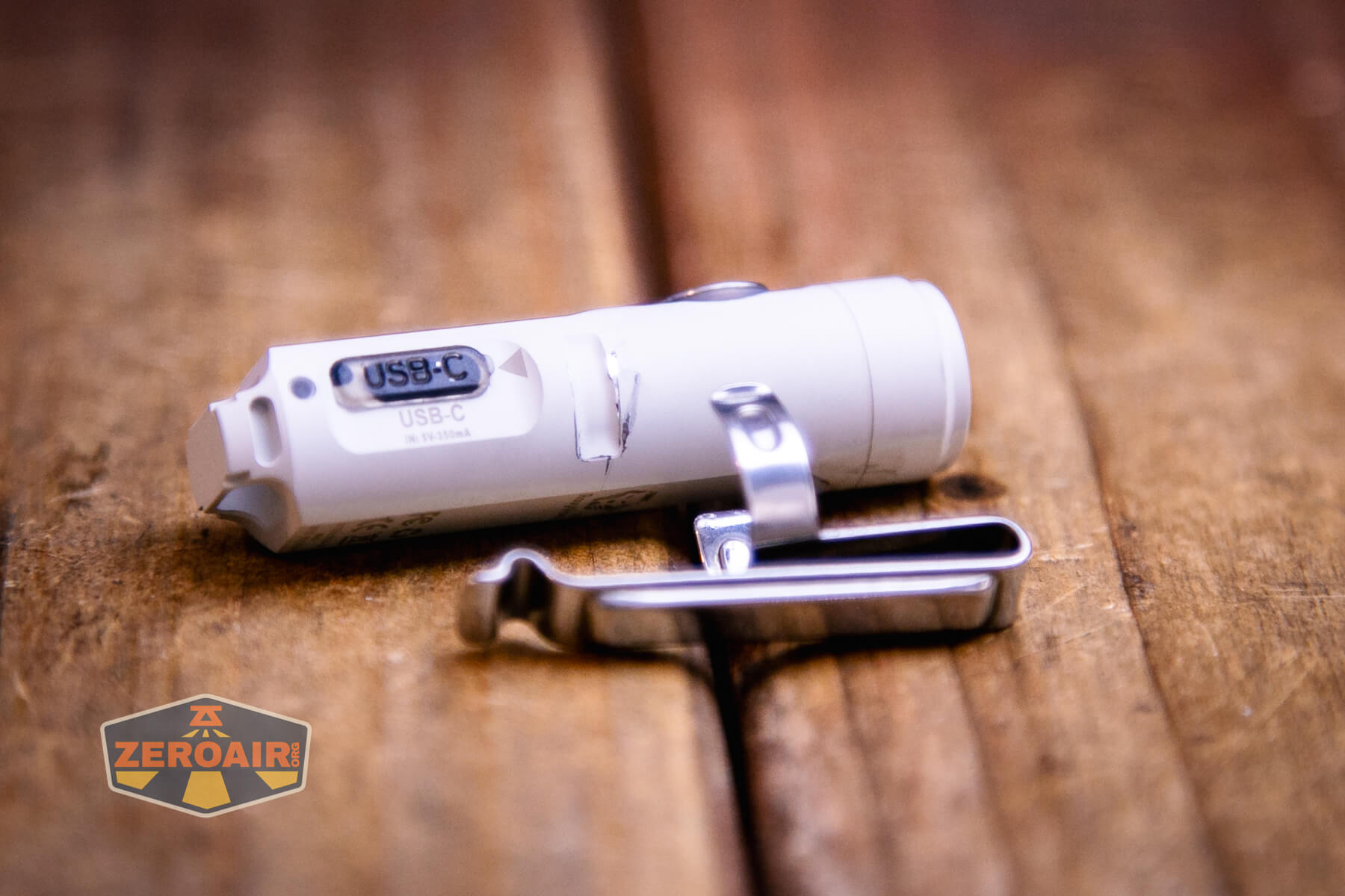 MAO finishes are not really known for robustness and can be scratched off. Below, you can see how the light looks after installing and removing the pocket clip. Not great.