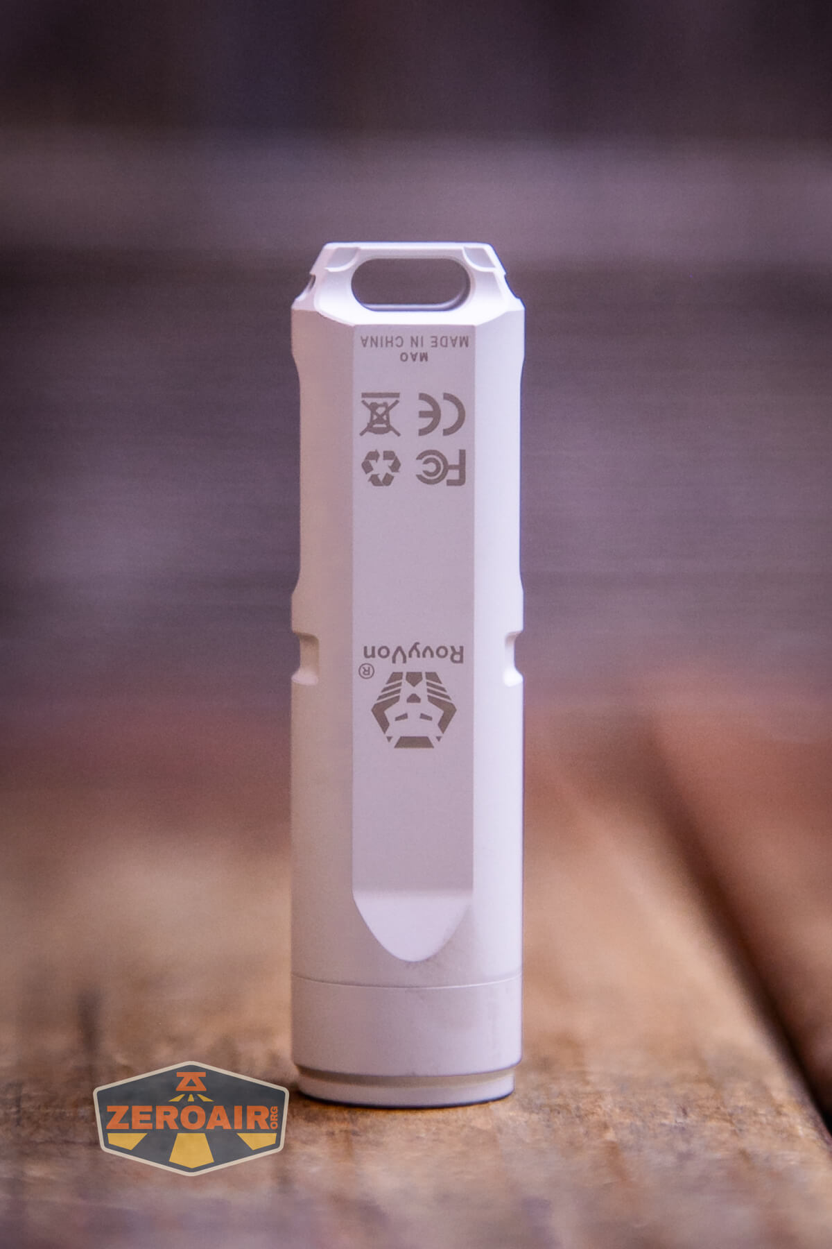 There’s a single side switch for operating the RovyVon Aurora A3 MAO flashlight. It’s a clicky e-switch.