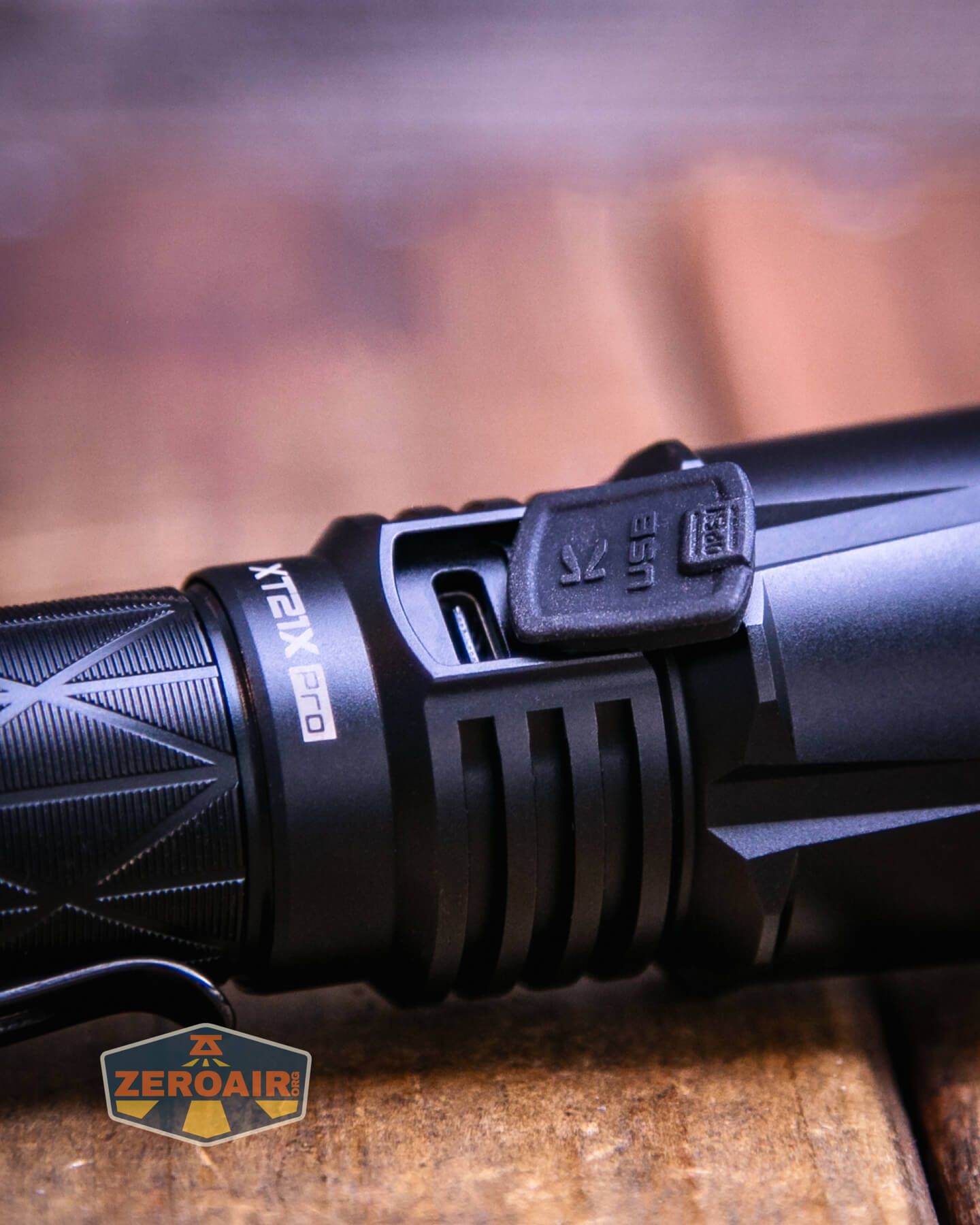 The Klarus XT21X Pro tactical flashlight has built-in charging. The charge port is USB-C and has a snug press-in cover.