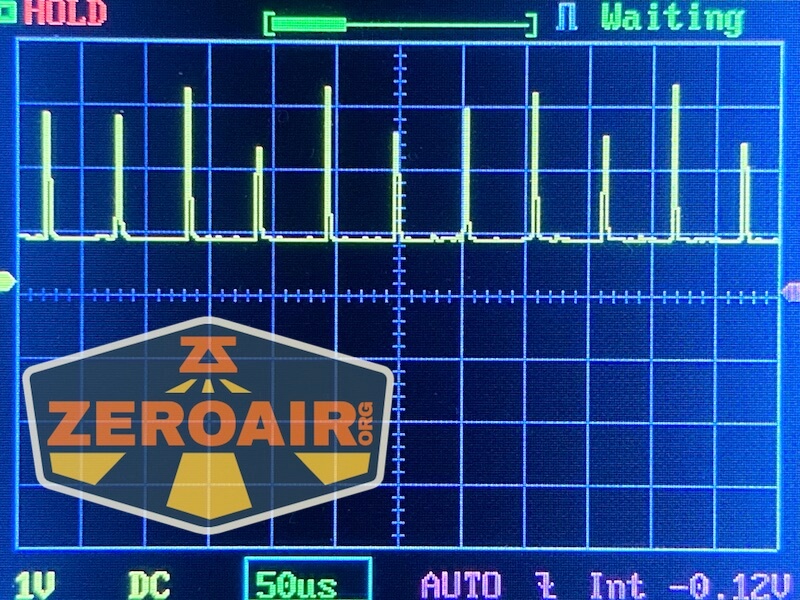 Here you can see a “baseline” – a chart with almost no light hitting the sensor. Then there’s the Ultrafire WF-602C flashlight, which has some of the worst PWM I’ve seen. It’s so bad that I used a post about it to explain PWM! Here are multiple timescales (10ms, 5ms, 2ms, 1ms, 0.5ms, 0.2ms) to make comparing this “worst” PWM light to the test light easier. That post also explains why I didn’t test the WF-602C at the usual 50us scale.
