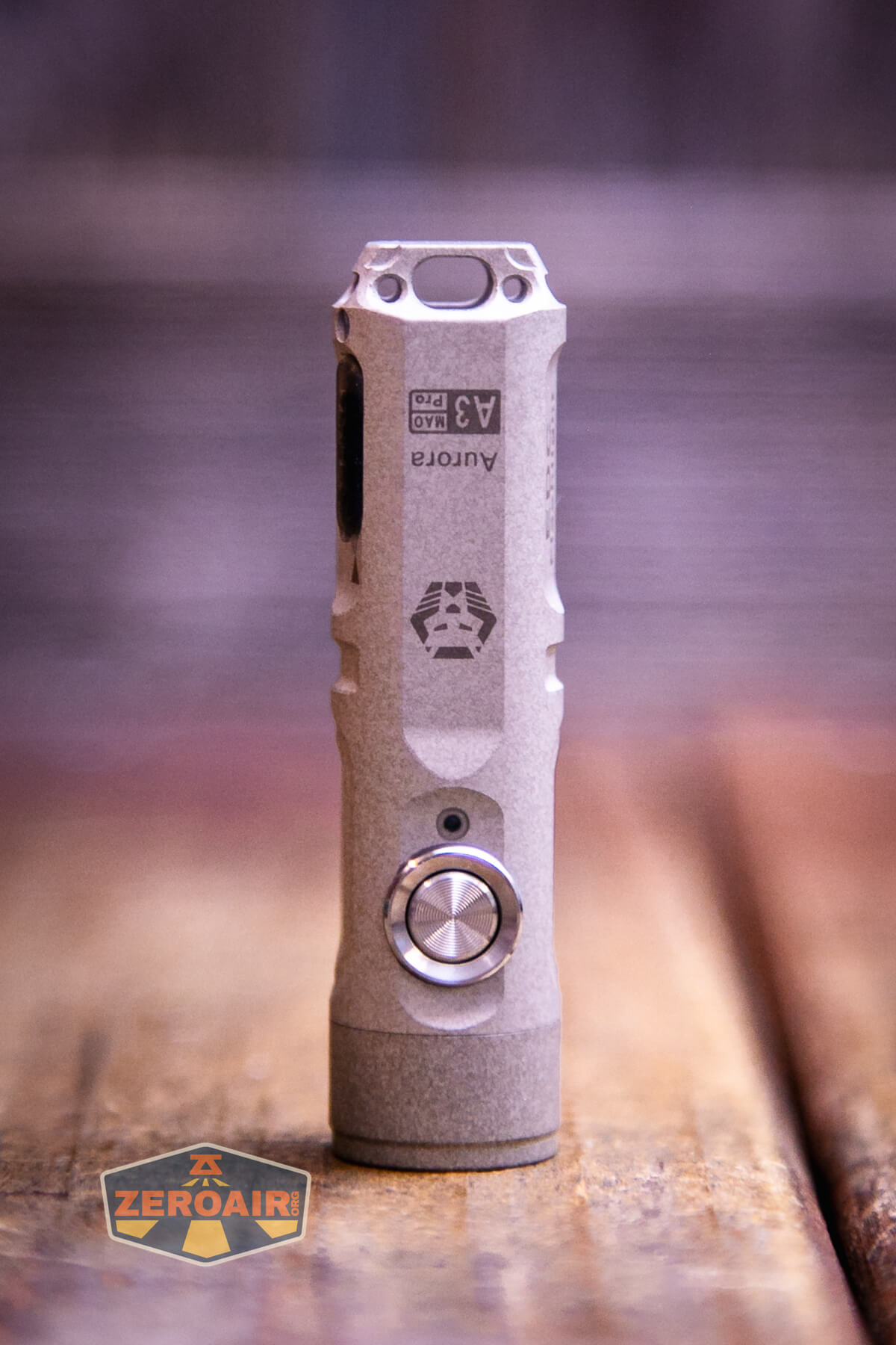 I like the new finish on the A3 Pro. MAO is neat but this really is more of a “marble gray.” Luminus SST-20 emitters are also great, but this one’s cool white; I’d definitely prefer the lower output higher CRI option. Otherwise, this is a standard Aurora, and they’re nice little lights. The battery isn’t swappable, so bear that in mind.