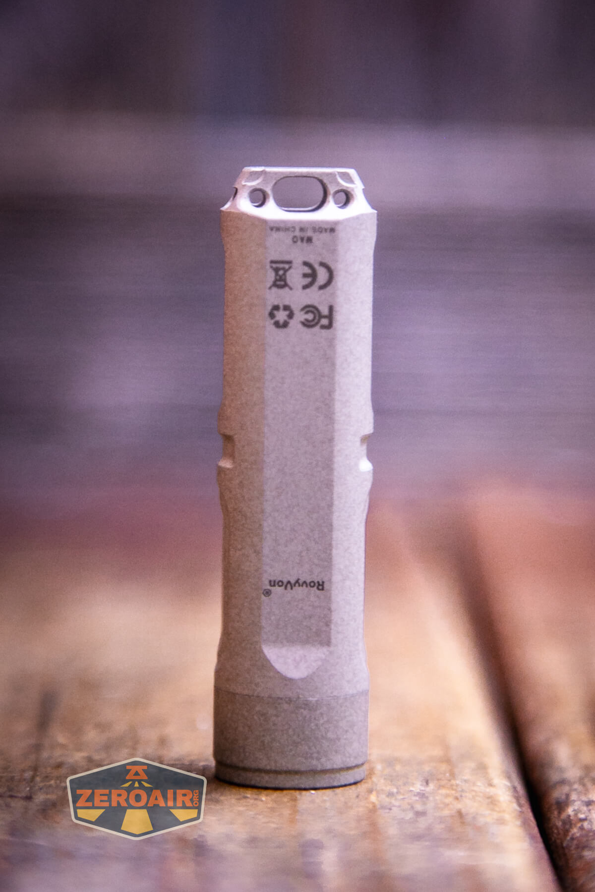 There’s a single side switch for operating the RovyVon A3 Pro MAO flashlight. It’s a clicky e-switch.