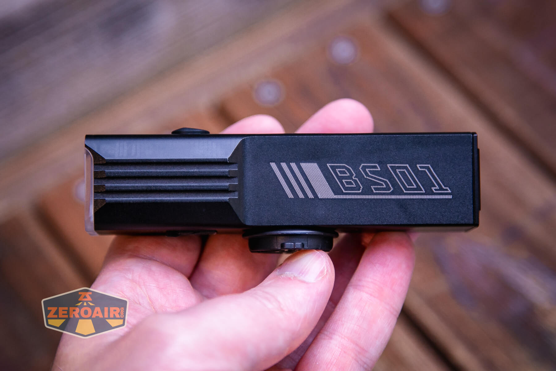 A single e-switch controls the BS01. It’s a big switch and quite nice, really. It also has an indicator feature and can be lit in red, green, or blue.