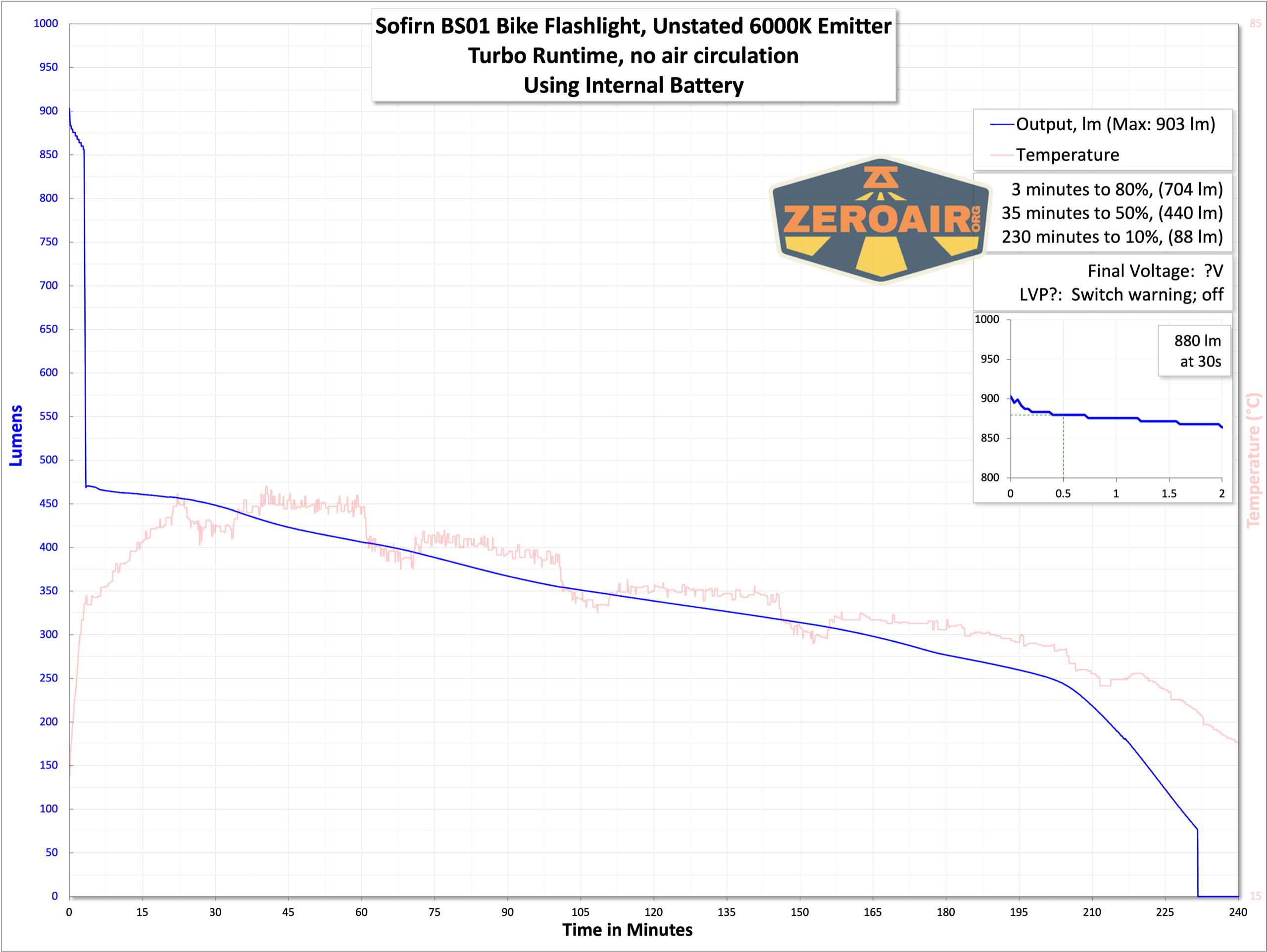 | Measured Lumens (at 30s) | 880 (44% of claim)^ |