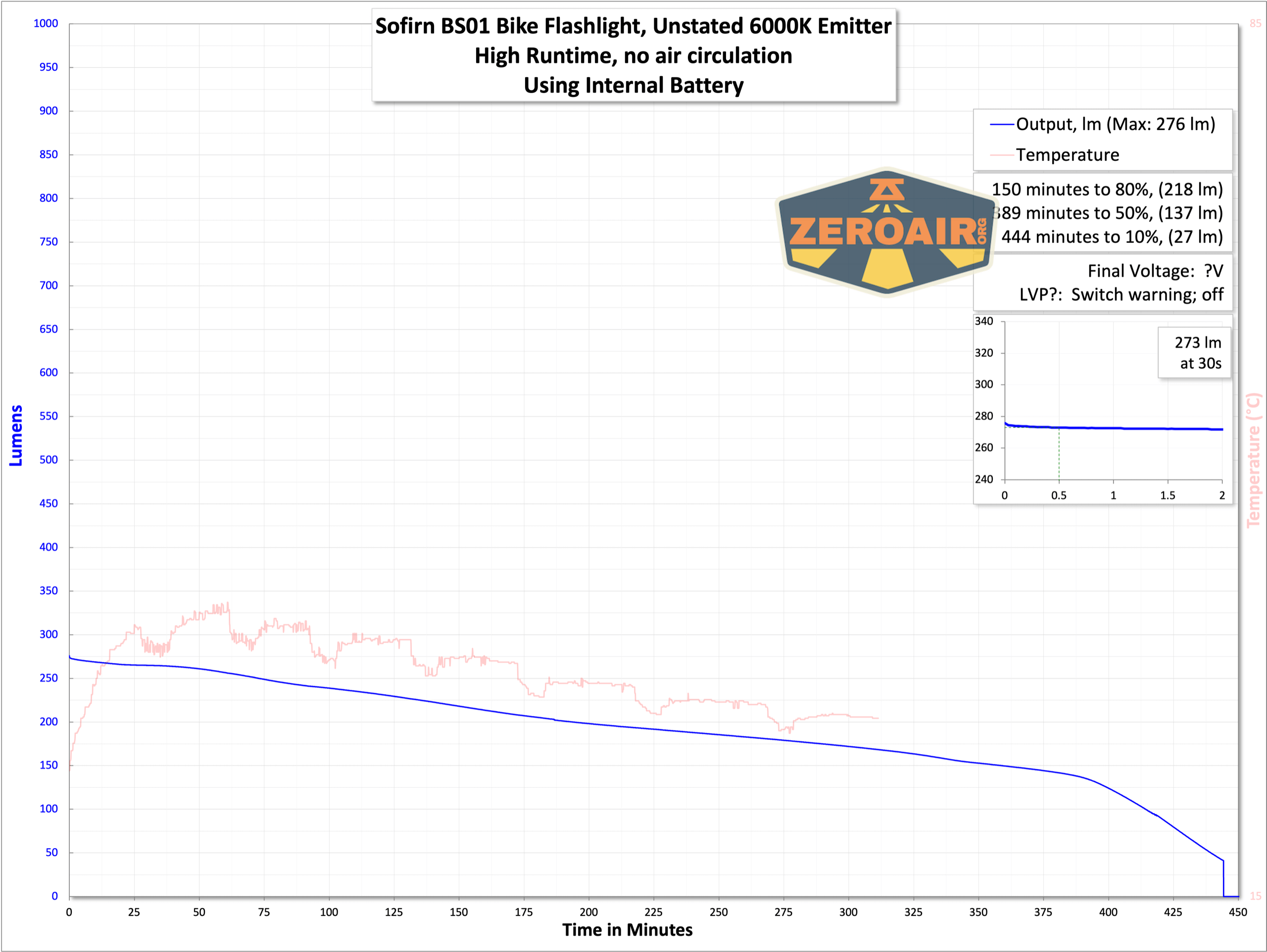 ^ Measurement disclaimer: Testing flashlights is my hobby. I use hobbyist-level equipment for testing, including some I made myself. Try not to get buried in the details of manufacturer specifications versus measurements recorded here; A certain amount of difference (say, 10 or 15%) is perfectly reasonable.