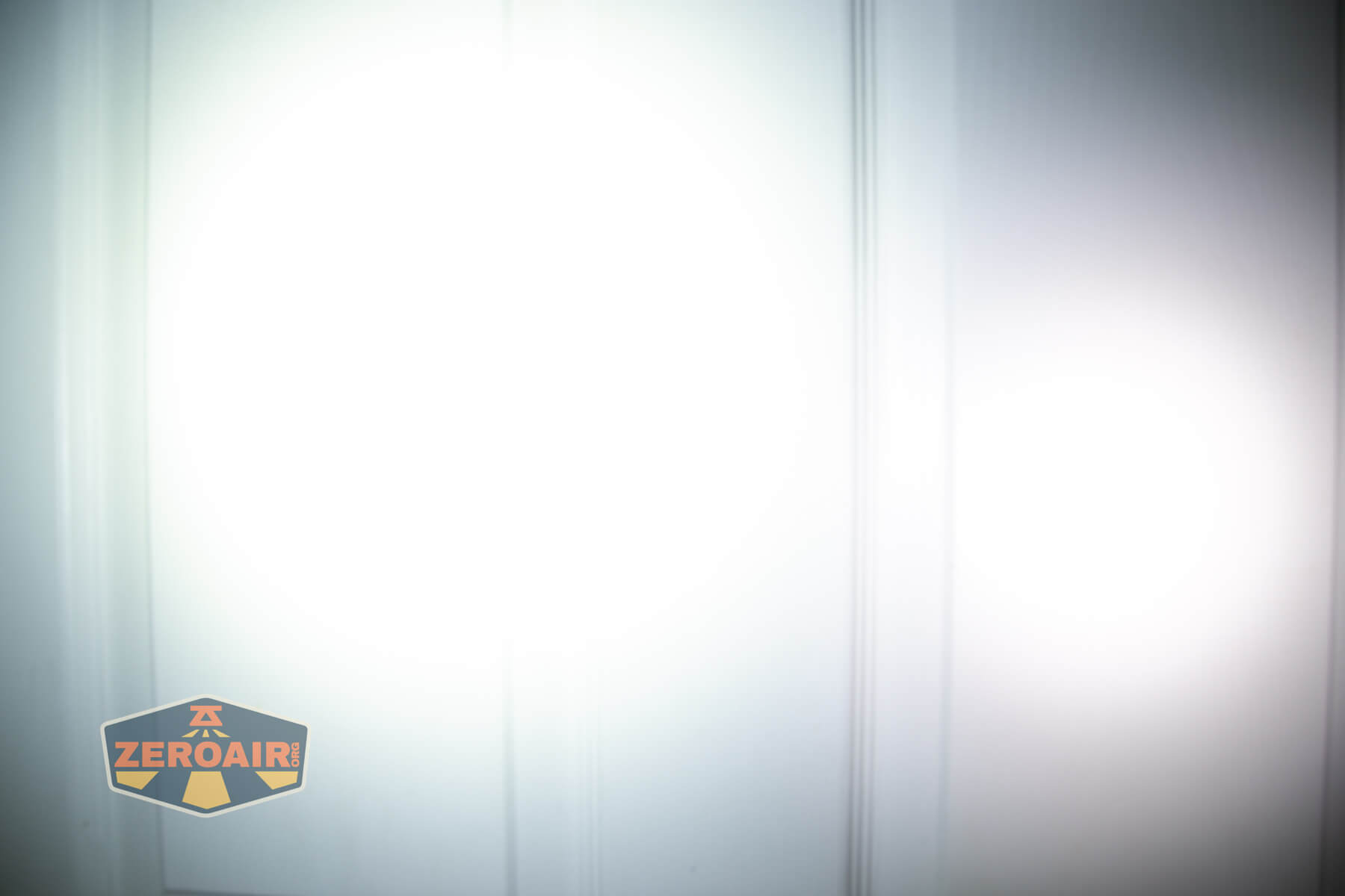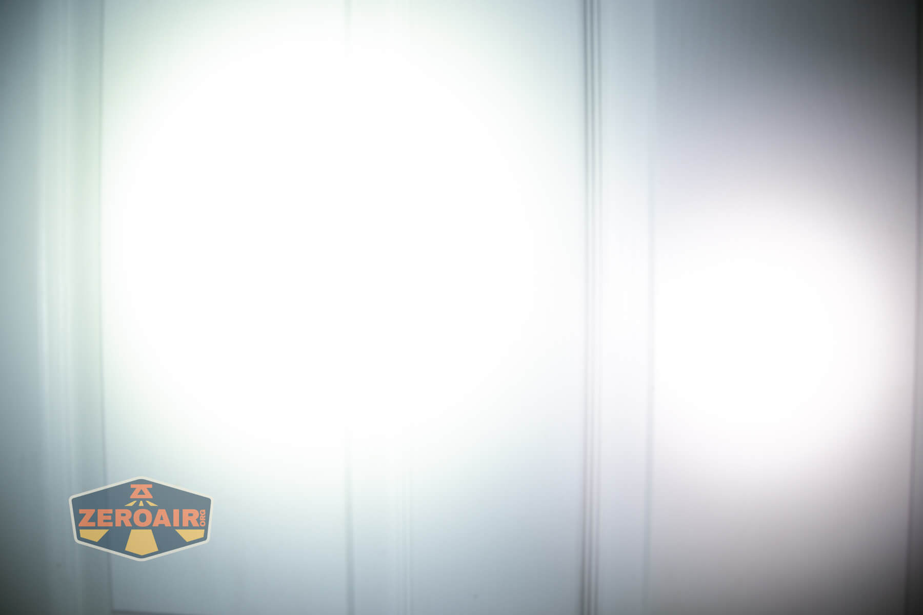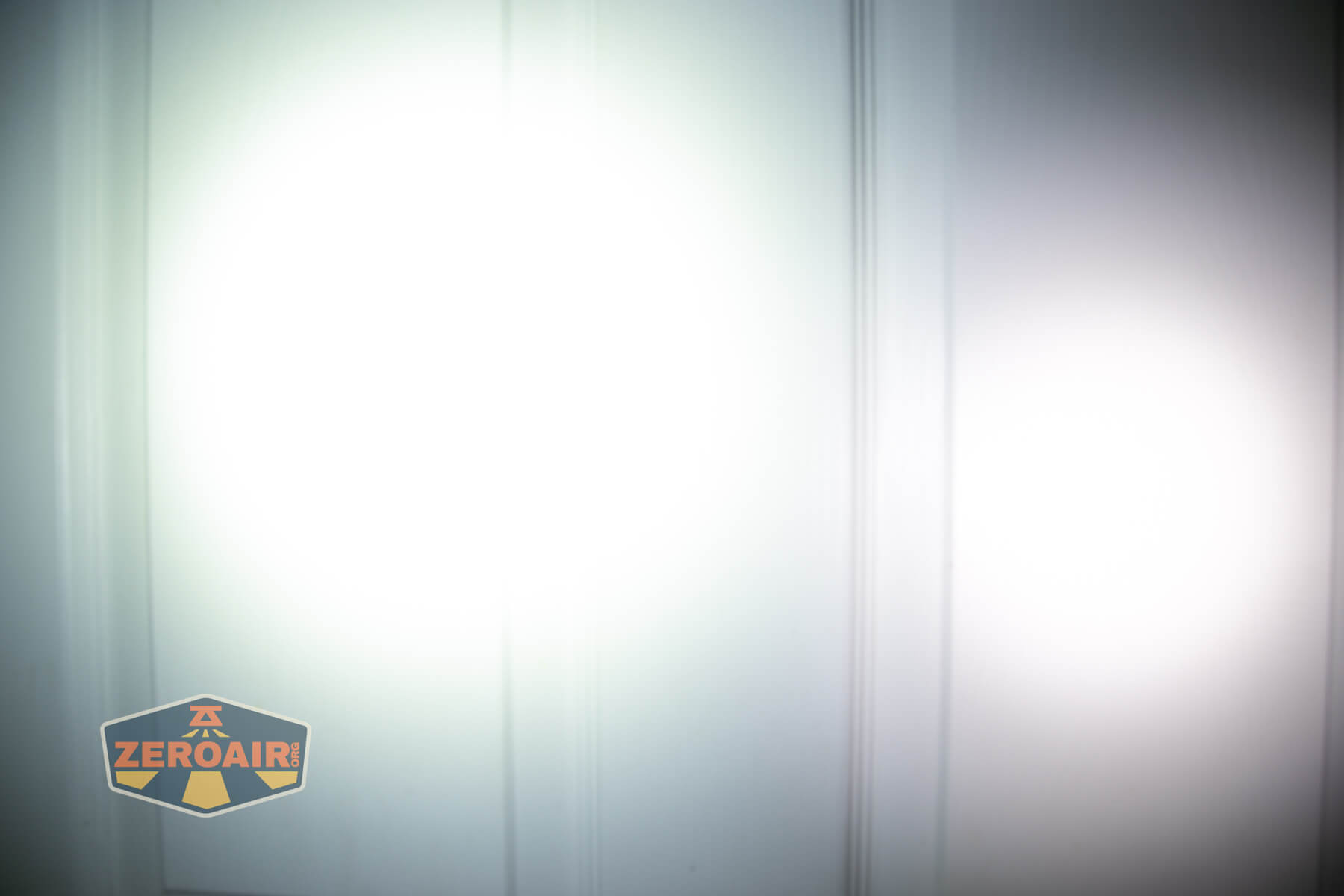 Here’s the test light with the venerable Convoy S2+. Mine’s a custom “baked” edition Nichia 219b triple. A very nice 18650 light.