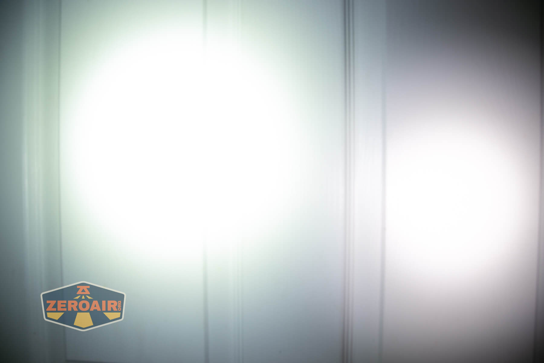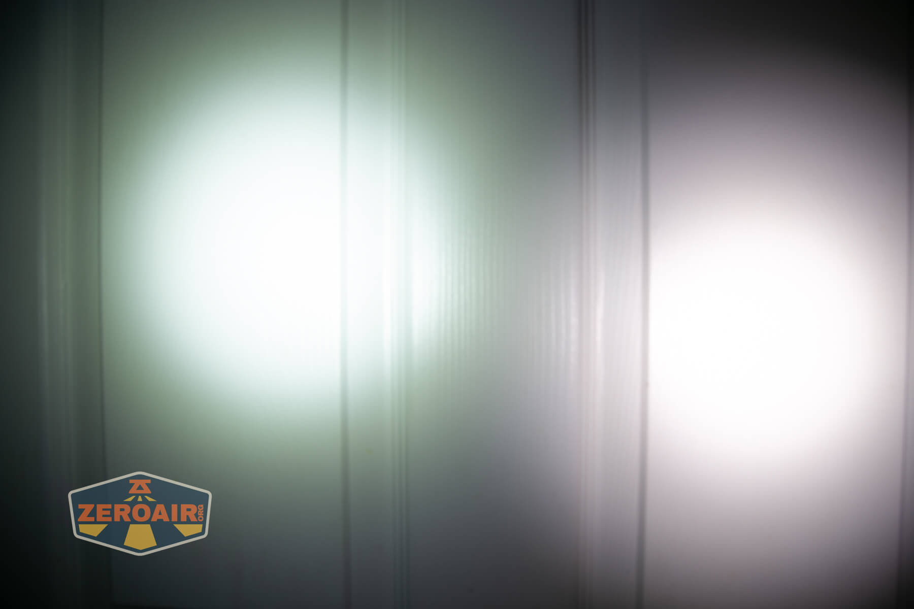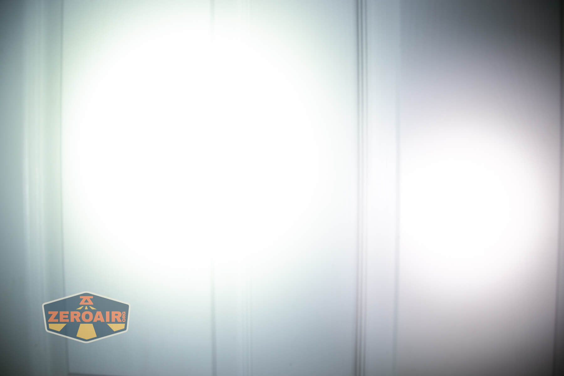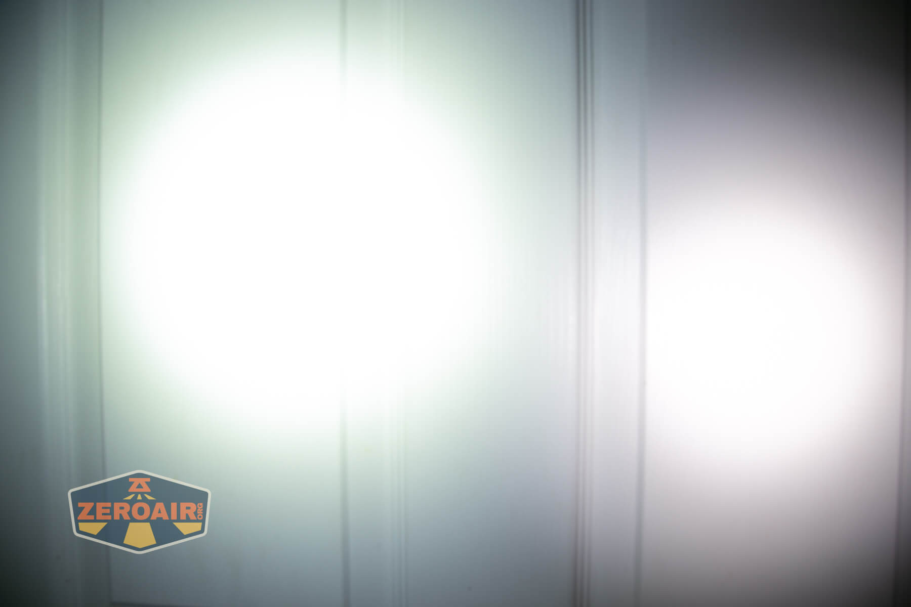 Here’s the test light with the venerable Convoy S2+. Mine’s a custom “baked” edition Nichia 219b triple. A very nice 18650 light.