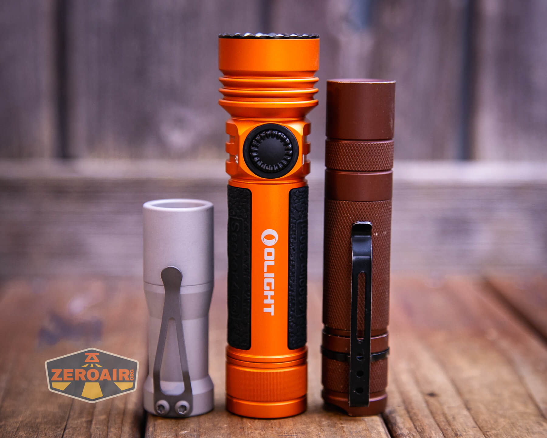 I think Olight opted to send me the orange body version instead of the neutral white version, thinking I’d prefer the body color over neutral white. I’m not sure they’re wrong, because I do love these orange Olights. Emitters can be swapped (body color really can’t.)