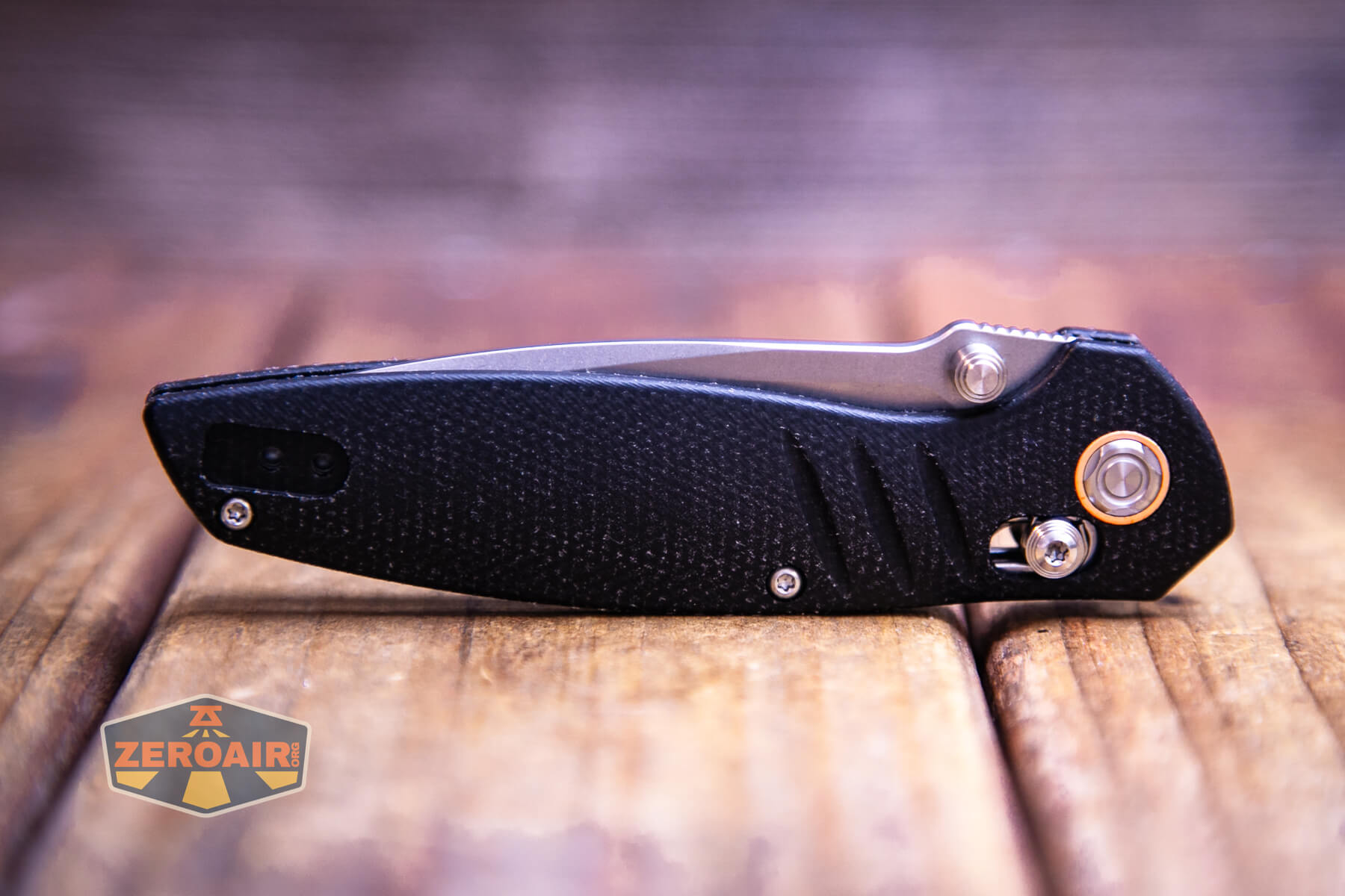 Opening the knife is done basically two ways. First is by flicking the thumbstud. There’s a thumbstud on both sides of the blade. One side has a TORX driver slot, but the other is flat. I take that to mean you couldn’t remove just one side, as they’re probably screwed together.