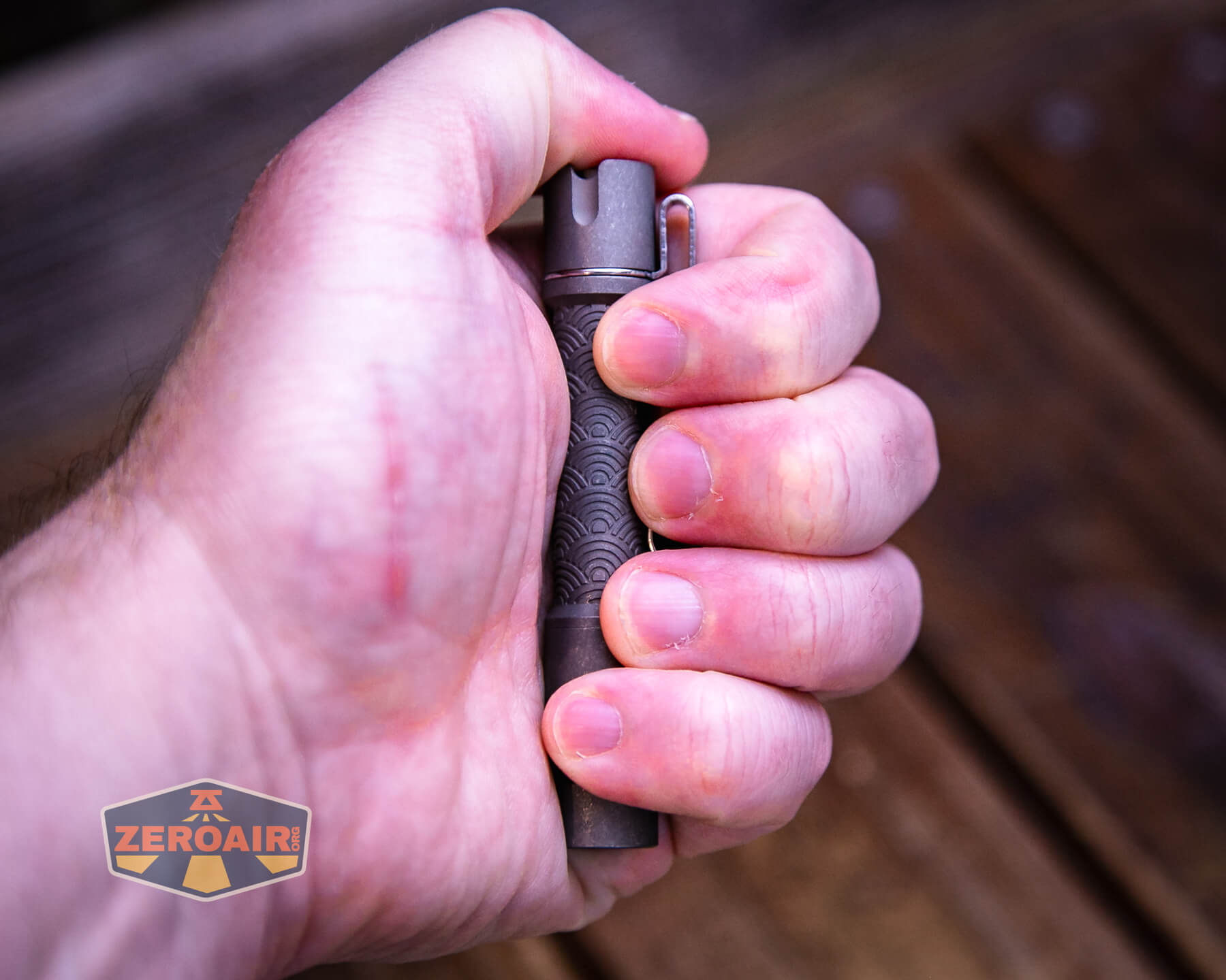 I have tested the ReyLight Pineapple Mini flashlight before. I liked it then! That one is brass, and at the time I was super into brass. I’ve sort of waned on brass and now I’m more interested in titanium (for no specific particular reason). So in that regard, I like the ReyLight Pineapple Mini Seigaiha flashlight in titanium just as much as I did in brass, but more now because it’s titanium. This Seigaiha design is a very nice touch, too! This newer one uses a Nichia 519a emitter, which of course, is fantastic.