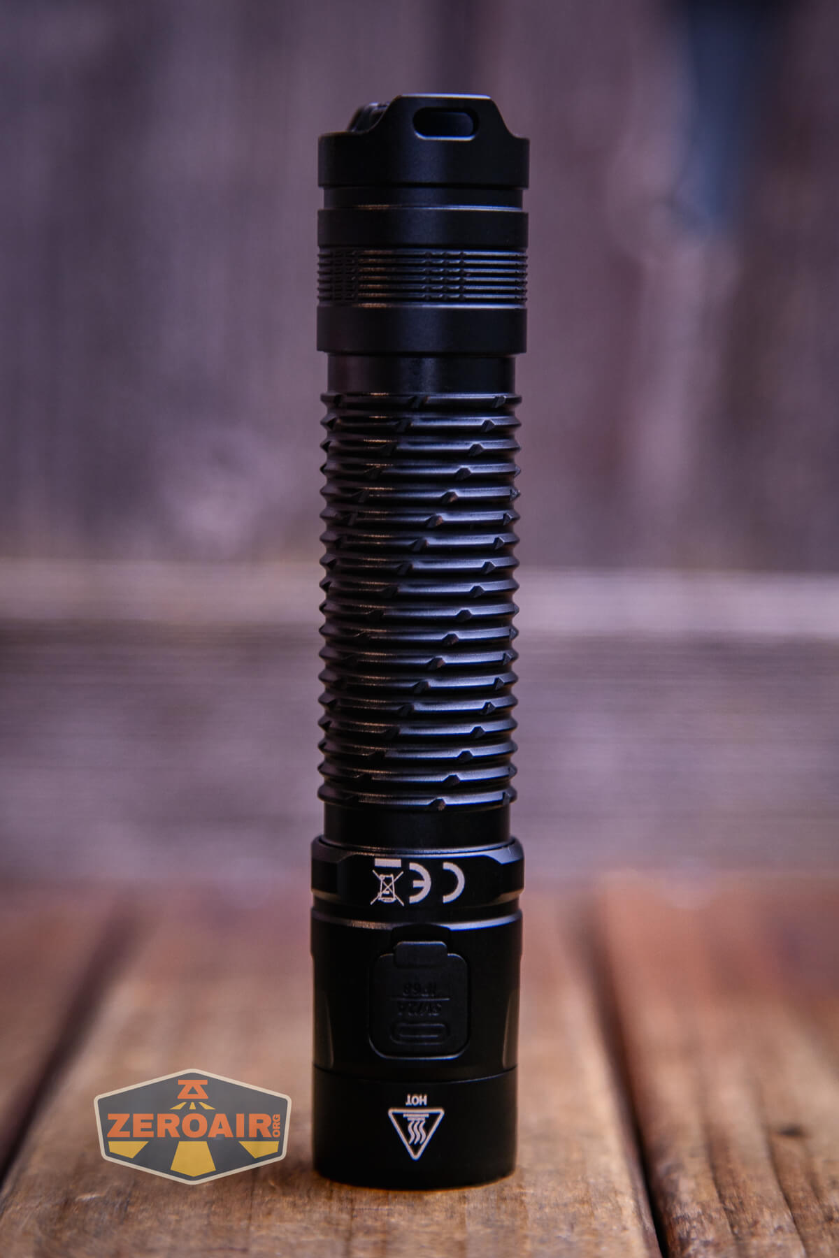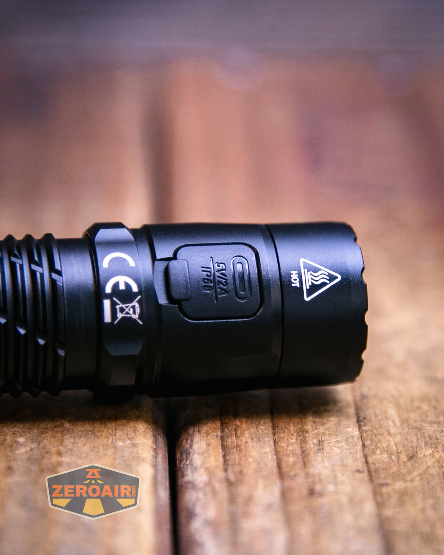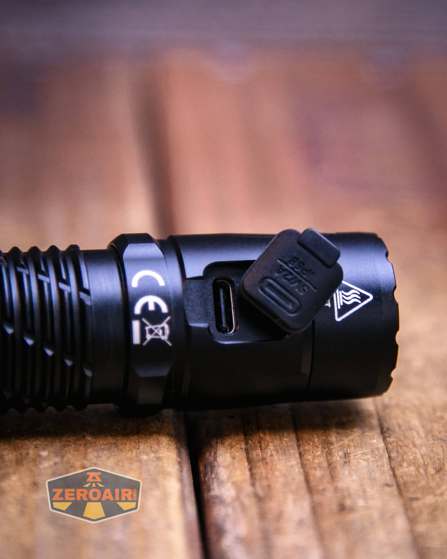 Charging of the (standard) 21700 cell that’s included happens by way of a USB-C charging port. The port is on the opposite side of the head to the e-switch.